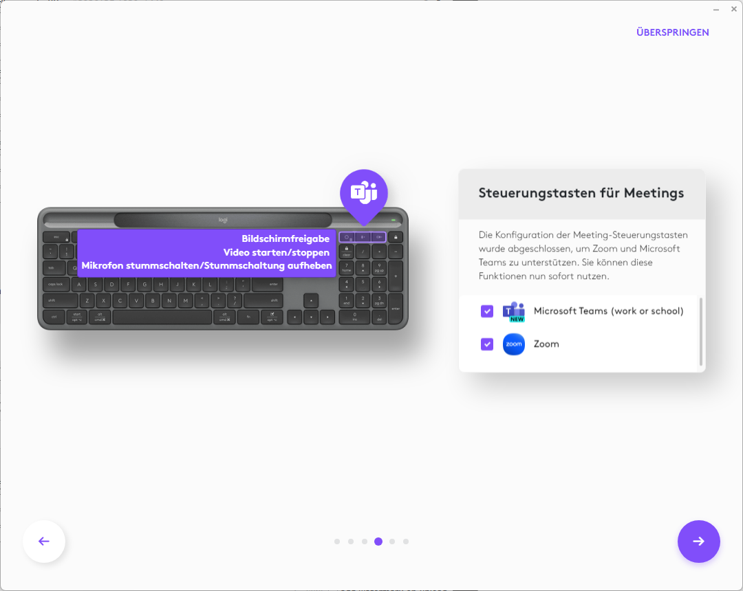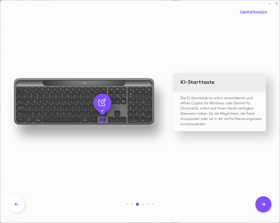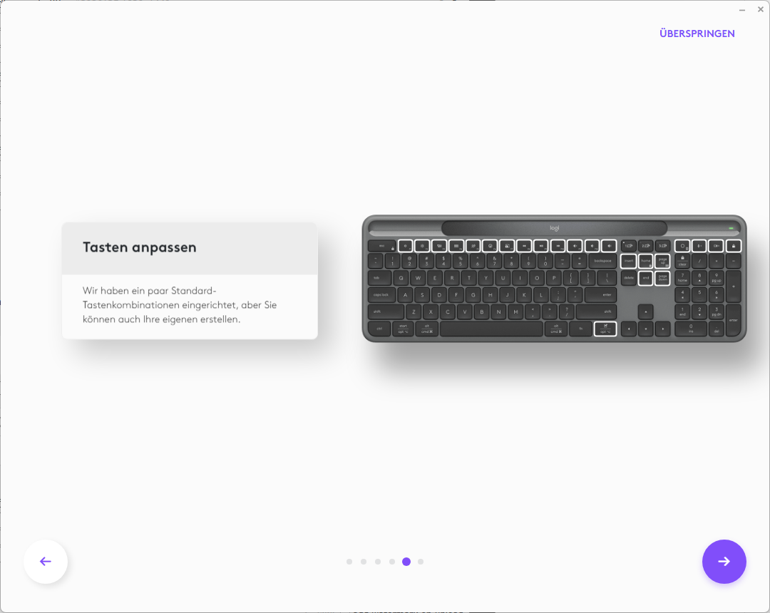 A billentyűkiosztás szabványos, ezért a legtöbb felhasználó számára azonnal ismerős, de a Logitech egy további AI billentyűt és további vezérlőbillentyűket adott hozzá az online megbeszélésekhez. A billentyűk közül számos személyre szabható vagy intelligens műveletekhez rendelhető.