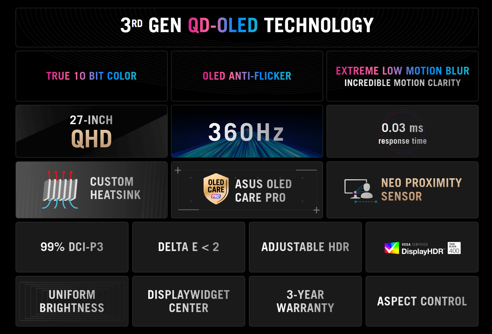 Amennyire meg tudjuk állapítani, a ROG Strix OLED XG27AQDNG az Asus Neo Proximity érzékelőjét is hozzáadja, hogy a jobb jelenlét-érzékelés révén tovább korlátozza az OLED beégését. A monitor emellett támogatja az OLED Care Pro-t, egy olyan technológiai csomagot, amely állítólag felülmúlja az Asus régebbi OLED Care Plus technológiáit. Bár az ár és az elérhetőség egyelőre nem ismert, a ROG Strix OLED XG27AQDNG további részletei az Asus globális weboldalán, a oldalon találhatók.
