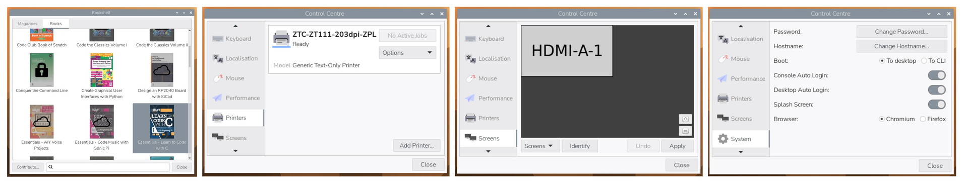 A Trixie emellett a rendszerbeállításokat egy új Vezérlőközpont-alkalmazásba foglalja, és így a Megjelenés, az Egér és billentyűzet, a Raspberry Pi konfiguráció és a Képernyő konfiguráció helyettesíthető. Még jobb, hogy a Vezérlőközpont támogatja a harmadik féltől származó bővítményeket és az egyéni beállítási oldalakat. Ezen felül az új operációs rendszer kiadásában az asztali képkomponensek metacsomagokba csoportosítva egyszerűsítik a Lite és az asztali környezetek közötti konvertálást.