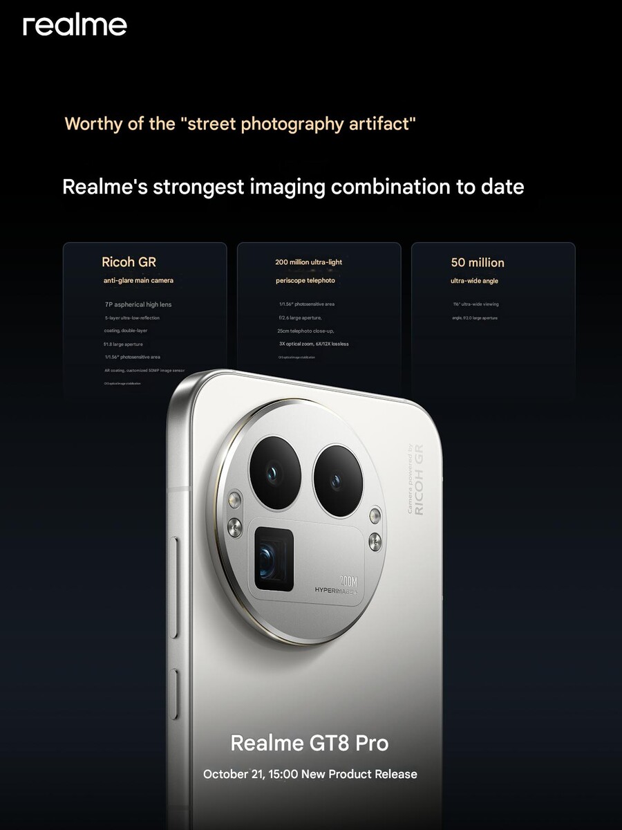 A Realme alelnöke nagyon aktív volt a Weibo-n az elmúlt napokban, és sok technikai specifikációt osztott meg a Realme GT 8 Pro-ról, mielőtt a Ricoh GR kamerás zászlóshajó hivatalosan október 21-én bemutatkozik. Néhány részletet és a Snapdragon 8 Elite Gen 5 SoC-t már megerősítették, és további információk vannak az akkumulátor specifikációival, a készülékházzal, a kamerákkal és néhány más aspektussal kapcsolatban a közelgő Realme okostelefonról.