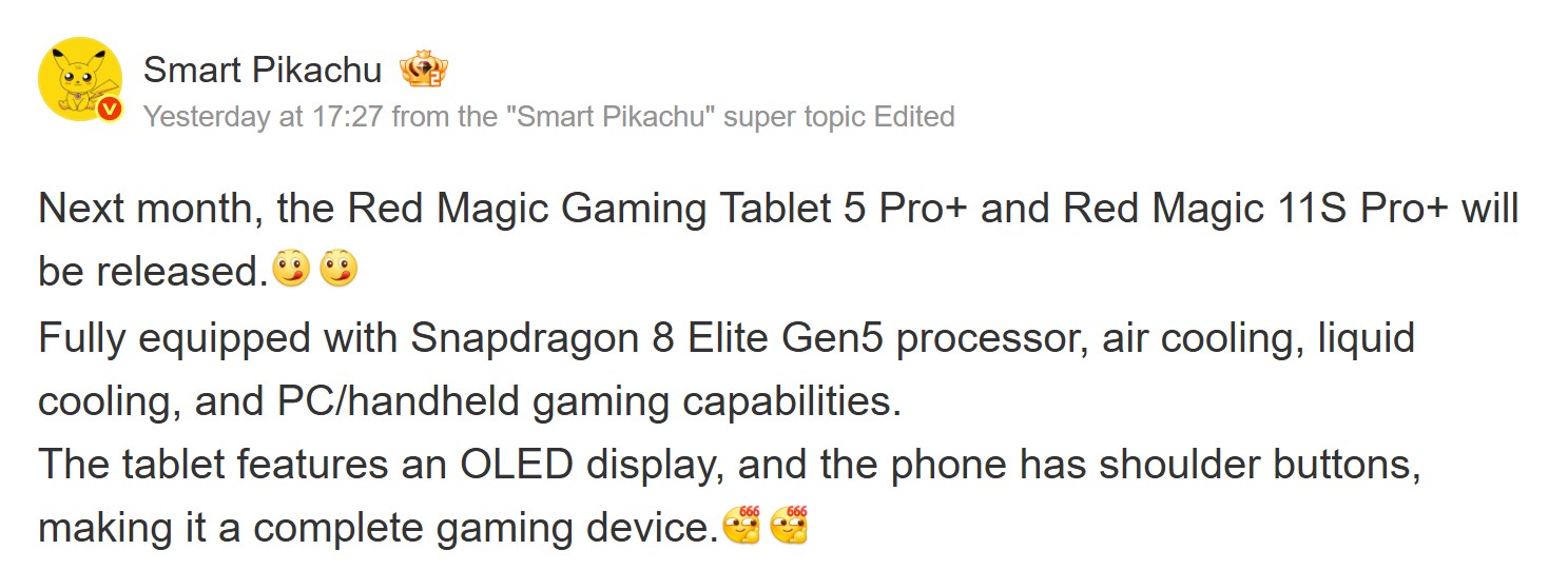 Érdemes megjegyezni azt is, hogy a táblagép mellett várhatóan a RedMagic 11S Pro+ sorozat is bemutatásra kerül. Ez a játéktelefon-vonal egy túlhajtott Snapdragon 8 Elite Gen 5 SoC-vel rendelkezhet.