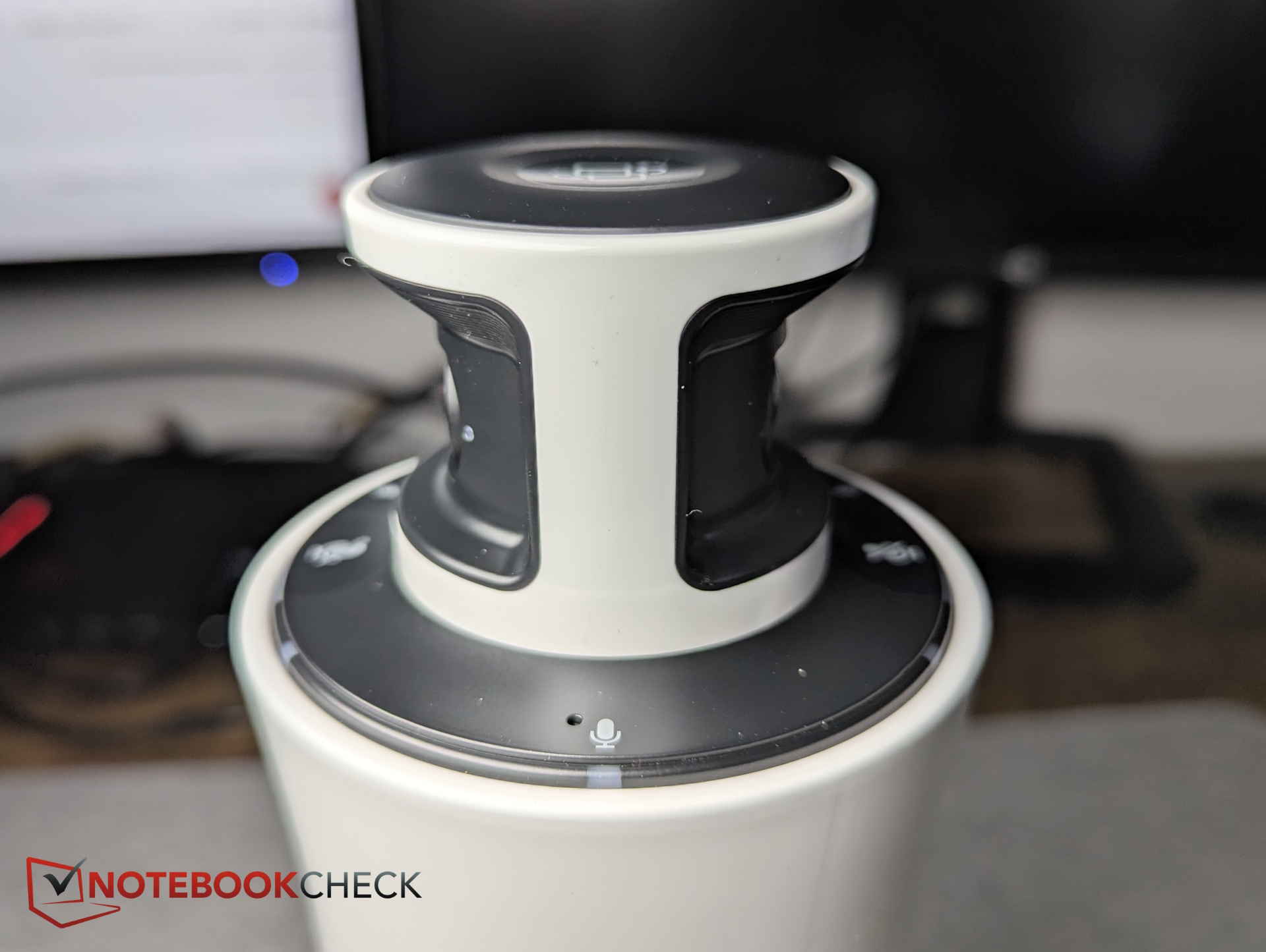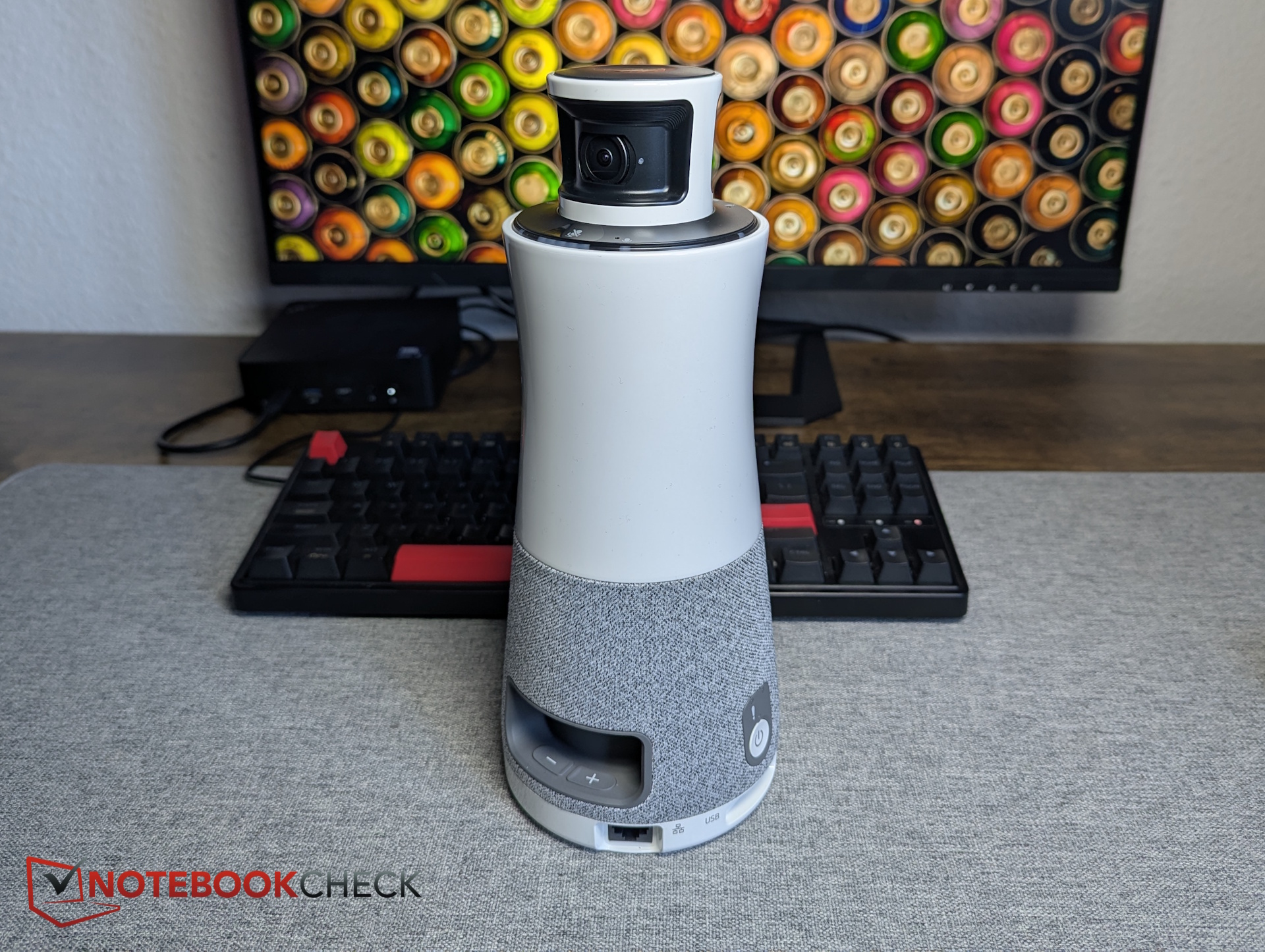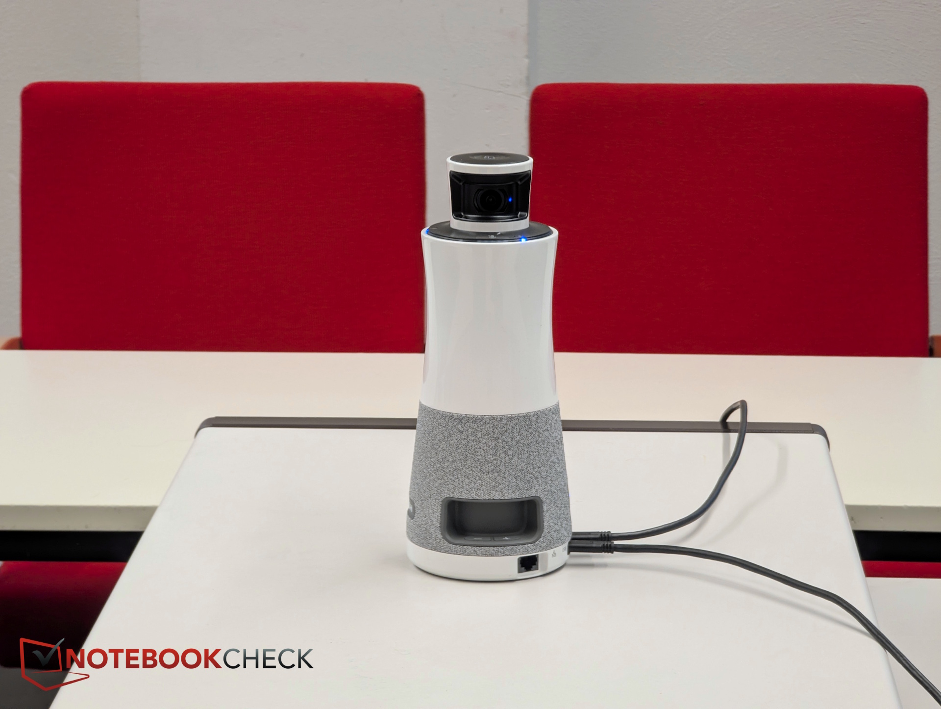 Az oszlop alakú műanyag házban a két 180 fokos kamera a legfelül helyezkedik el. Ennek van értelme, mivel a kamerák a laptopok kijelzői és egyéb akadályok fölé emelkednek, így közel a szemmagassághoz helyezkednek el anélkül, hogy a résztvevők látóterét akadályoznák. A három mikrofon szintén a tetején helyezkedik el.