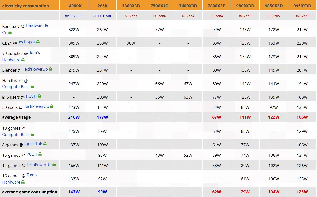 A Ryzen 7 9850X3D állítólag 32%-kal több energiát fogyaszt, mint a Ryzen 7 9800X3D, az átlagos energiafogyasztás 104 W vs. 79 W. Ez hatalmas növekedés a Ryzen 7 9800X3D-hez képest, az egyik leghatékonyabb CPU a tesztjeink szerint.