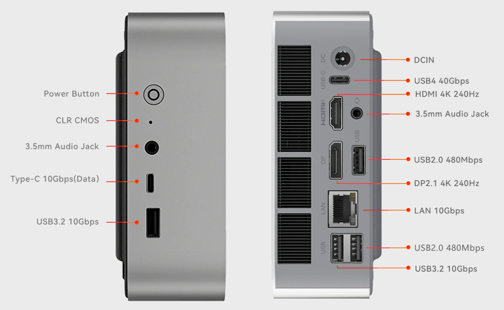 Mindkét konfiguráció az AMD új Ryzen AI 9 HX 470 APU, valamint M.2 2280 és SODIMM foglalatok PCIe 4.0 SSD-k és DDR5-5600 RAM memóriák számára. Emellett 10 Gbps-os LAN is rendelkezésre áll, valamint egyéb portok mellett USB4-es csatlakozás is. A Beelink emellett egy kiterjedt gőzkamrás hűtőrendszert is beépített, hogy minimalizálja a termikus throttlingot és a túlzott ventilátorzajt.