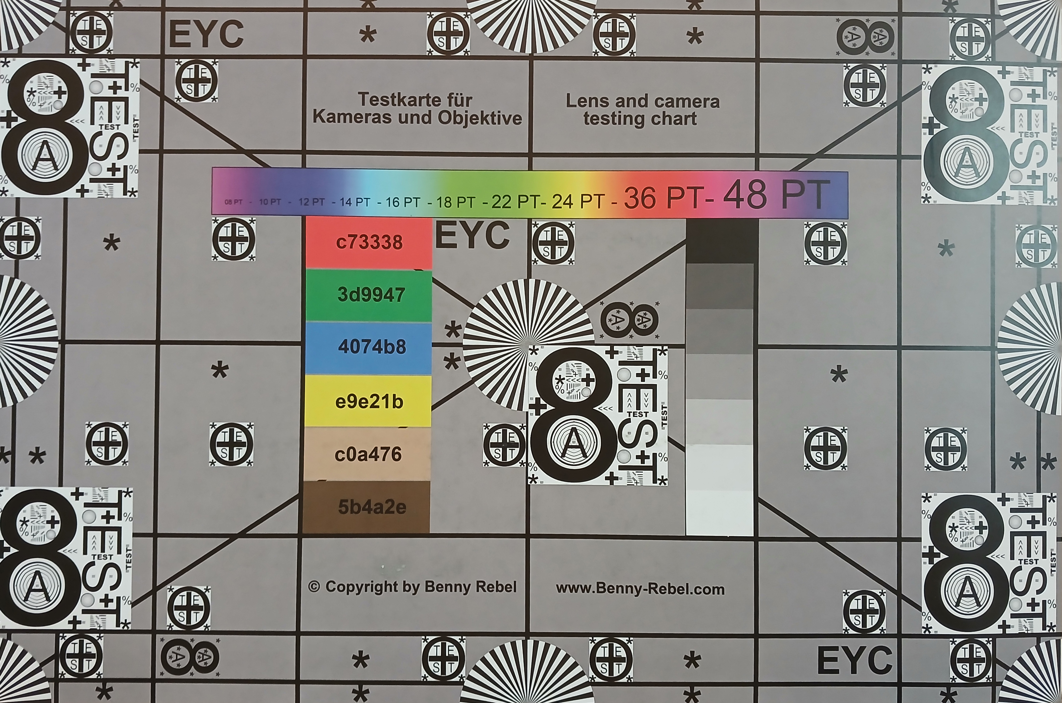 | Colorchecker dE 2000 max. * | 5.49 | 4.41 20% | 6.77 -23% | 4.24 23% | 6.38 -16% |