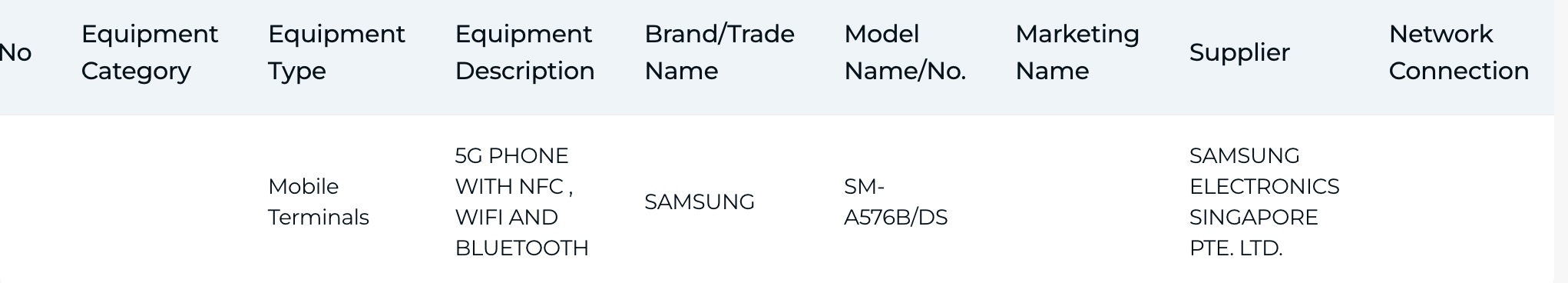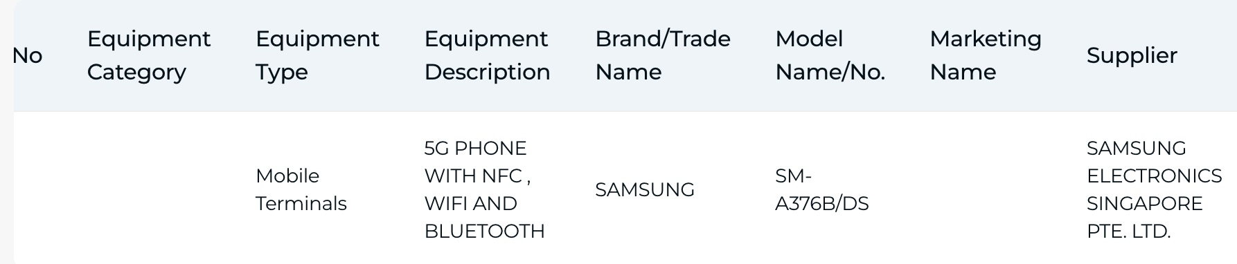 A Galaxy A37 és a Galaxy A57 az "SM-A376B/DS", illetve az "SM-A576B/DS" modellszámmal rendelkezik. Az IMDA listázása nem árul el semmilyen információt a specifikációkkal kapcsolatban, de azt sugallja, hogy a globális bevezetés küszöbön állhat.