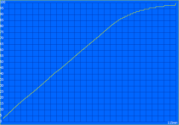 A 80 Wh-s akkumulátor jó üzemidőt biztosít, de ne feledje, hogy Wi-Fi tesztünkben főként fényes weboldalakat használunk, ahol az OLED képernyők hátrányban vannak az IPS panelekkel szemben. Wi-Fi tesztünkben több mint 16 órát határozunk meg, és még mindig majdnem 9 órát teljes fényerőn. A riválisok még ennél is hosszabb üzemidővel gazdálkodnak, de általában gyengébb képernyőket is használnak. Kivételt képez a ThinkPad X9 15, míg a Zenbook S16 nem bírja olyan sokáig.
