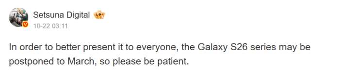 A Galaxy S26 család márciusi bevezetéséről szóló első pletykák Görögországból származtak. Egy dél-európai országból származó jelentés szerint, a Samsung rajongóknak a vártnál két hónappal tovább kell várniuk az utódra, a Galaxy S25 Ultra ( itt kapható az Amazonon). Annak idején kissé szkeptikusak voltunk azzal kapcsolatban, hogy valóban ennyire eltolódik-e a bevezetés. Azonban egyre több forrás utal arra, hogy jelentős késés várható. A nagyra becsült szivárogtató, Setsuna Digital a Weibo-n fedte fel hogy a Galaxy S26 sorozatot csak 2026 márciusában mutatják be