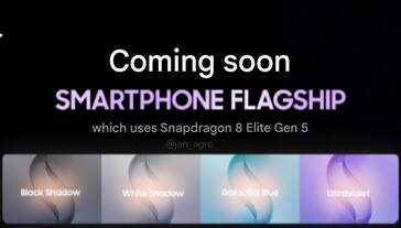 Nem lehetünk biztosak abban, hogy ez egy hamisítvány, de a megbízható szivárogtató, Ice Universe kommentálta a szivárgást, és rámutatott egy részletre, ami további vitákat indíthat el. Az állítólagos Samsung promó szerint (gépi fordításban jobbra lentebb) a zászlóshajó okostelefon a Snapdragon 8 Elite Gen 5 négy színválasztékban lesz elérhető: Black Shadow, White Shadow, Galactial (talán "Galatial" kék) és Ultraviolet. A fenti, kissé felvilágosított és AI-felskálázott render szintén az Ultraviolet színre utal. Az eredetit alább találod