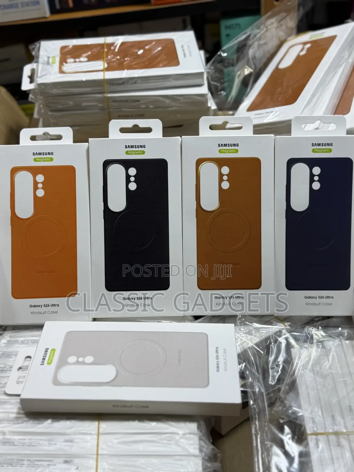 Még a Samsung hivatalos tokjai is kaphatók már egyes kiskereskedőknél, ahogy azt számtalan kép mutatja a közösségi médiában. Különösen a Kindsuit tok, a műbőr kinézetű, úgy tűnik, hogy nagy mennyiségben szállítják, és legalább öt színben lesz elérhető. A csomagoláson jól látható a "Magnetic" szó