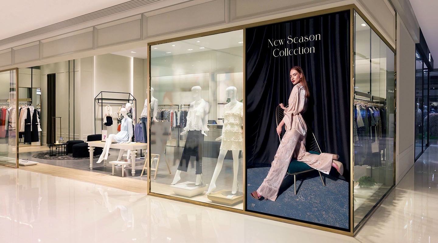 A képernyő átlója 115 hüvelyk, és VA panelt használ, amelynek felbontása 3840 x 2160. Egy ekkora képernyőátló kisebb felbontásoknál látható pixelesedést eredményezne. A jellemző fényerő 1000 cd/m², ami különösen a világosabb környezetben történő megtekintésnél fontos. A válaszidő 6,5 ezredmásodperc, bár ez a reklámok szempontjából nem annyira lényeges.