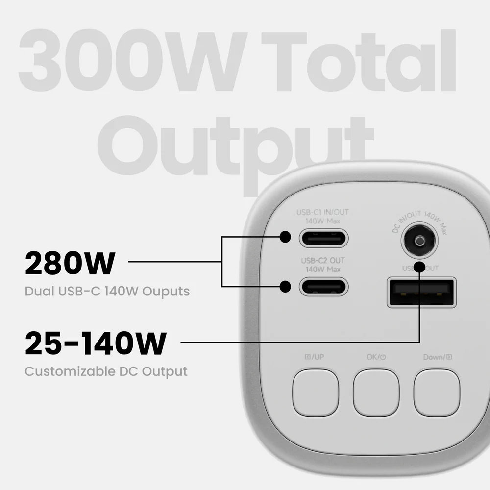 A Sharge új Shargeek 300 power bankja nevét onnan kapta, hogy négy portjáról 300 W maximális kombinált teljesítményt képes leadni. Kettős, 140W-os USB-C portokkal rendelkezik, amelyekkel két laptopot lehet egyszerre tölteni. Van még egy USB-A port és egy akár 140W-os egyenáramú kimenet is. Emellett támogatja a PD 3.1 gyorstöltési protokollt is.