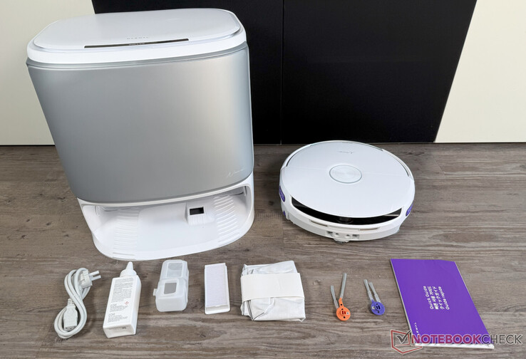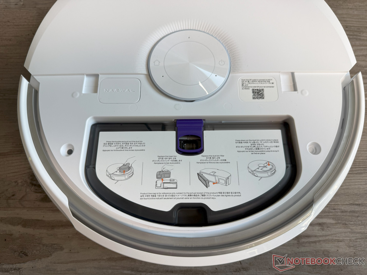 A mellékelt takarítóállomás már nem rendelkezik integrált kijelzővel, mint korábban a Narwal Freo modellek esetében. Van azonban egy beépített gomb a robot közvetlen indításához. Az állomás az akár 120 napig tartó porelszívás mellett (a gyártó szerint) AI-adaptív forró vizes törlést is kínál 60°C-os temperált vízzel. Ezt követi a 45°C-os forrólevegős szárítás. Az állomás forró vizes öntisztító funkcióval és cserélhető tisztítószűrővel is rendelkezik. A tisztítószer közvetlenül a víztartályba önthető, ami valamivel kevésbé kényelmes.