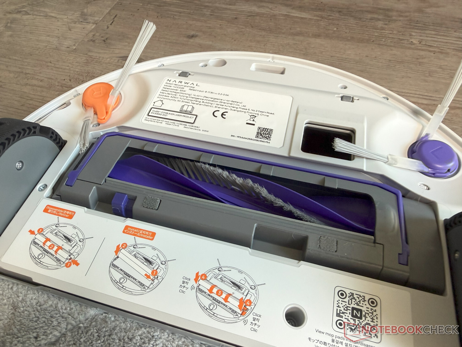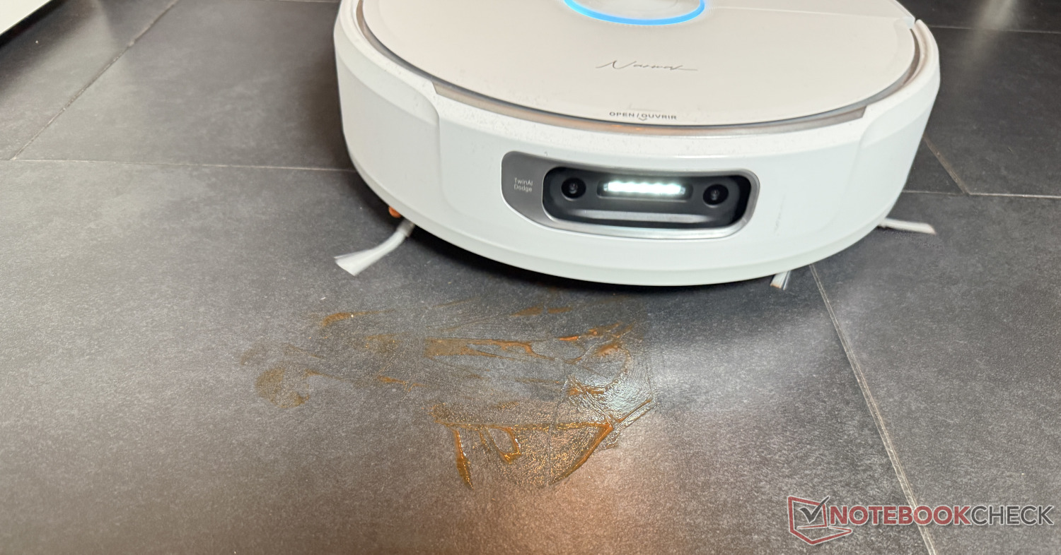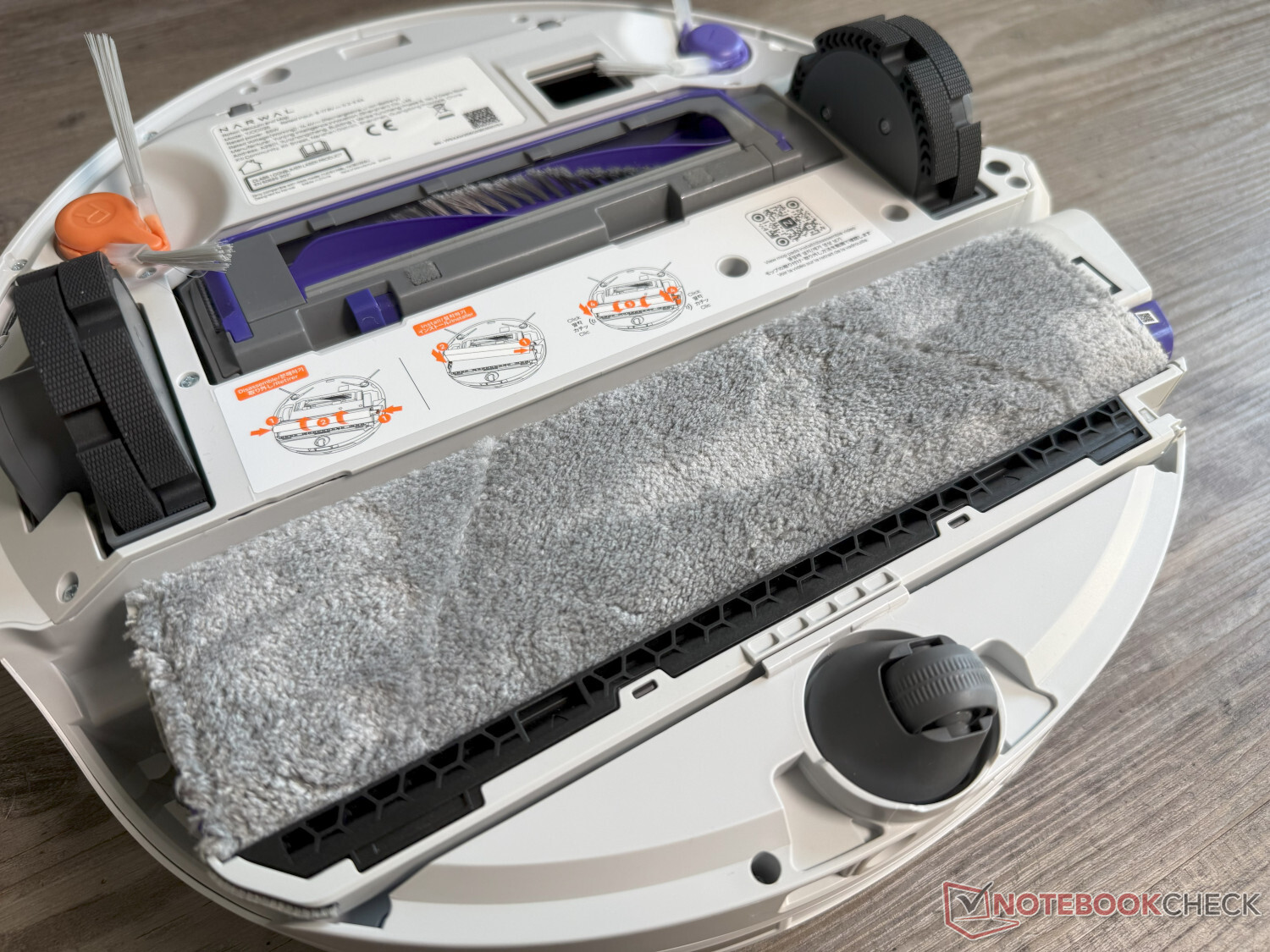 Kevésbé voltunk elégedettek azzal, hogy az oldalsó kefék tiszta felmosó üzemmódban még mindig forogtak. Ráadásul a kefék nem emelhetőek, ami különösen hasznos lenne a tesztben jól működő AI folyadékérzékelés esetén. Ez a nedves vagy ragacsos foltokat feleslegesen teríti szét a környezetben és a készüléken. Sajnos azt is észrevettük, hogy a szinte szegély nélküli felmosáshoz kihúzható henger néha végigsikál az ajtókon, bútorokon és hasonlókon.
