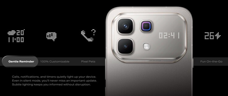 A készülékház néhány egyedi elemmel is rendelkezik. Először is egy programozható akciógombot, amely többek között elindíthatja az AI asszisztenst vagy megnyithatja a kamera alkalmazást. Másodszor, egy pontmátrix kijelző a kameramodulban, amely jelezheti a bejövő üzeneteket, mutathatja az időt vagy megjeleníthet egy virtuális háziállatot. Végül pedig egy "Egészségmonitor" - ami úgy néz ki, mint egy fényképezőgép zárógombja, valójában egy pulzusszám- és SpO2-érzékelő. A méréshez a felhasználók egyszerűen csak 30 másodpercre ráhelyezik az ujjukat erre az érzékelőre.