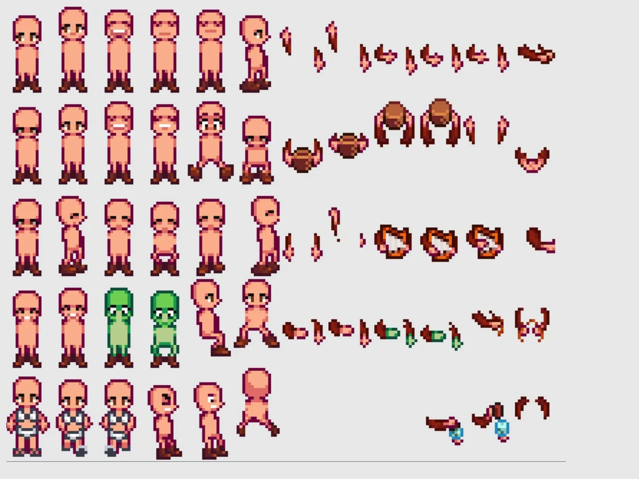 Amit a rajongó felfedezett, azok teljesen meztelen karakterek voltak, gyakran csak cipőt viseltek - és hiányoztak az olyan vonások, mint a karok vagy a haj. Sokan közülük ismerős pózokat mutatnak, beleértve a "fenékig érő" kardlendítést, a szomorú vagy ijedt arckifejezéseket, sőt, még Lewis polgármester ikonikus meglepetésszerű ugrását is, nyers, textúrázatlan formában. Néhány modell furcsán zöldre van színezve, a szétszórt testrészek, például levált karok és véletlenszerű tárgyak, például egy viking sisak váratlanul felbukkannak.
