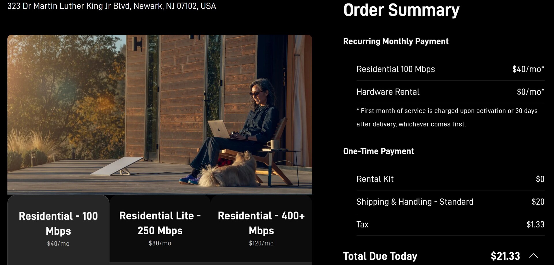 Az új lakossági csomag árai mindössze havi 40 dollártól kezdődnek, és akár 100 Mbps sebességet biztosítanak, amit a Starlink egy háztartásban két vagy három személy számára tart megfelelőnek, akik normál mennyiségű böngészést vagy videostreaminget végeznek akár HD felbontásban. A csomag korlátlan adat- és feltöltési sebességet is tartalmaz.