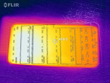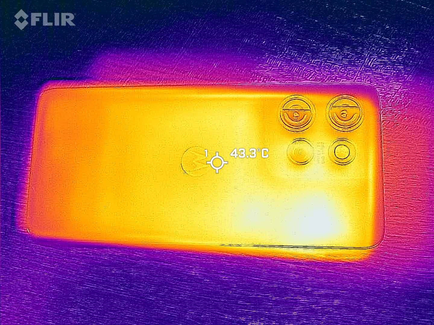 A felületi hőmérsékletek állandó terhelés mellett kifejezettek, de nem feltűnően magasak. Különösen azért, mert az Edge 60 Neo hulladékhője a 3DMark stressztesztek során nem tűnik fel negatívan. A Motorola okostelefon csak nagyon enyhén vagy egyáltalán nem throttol.