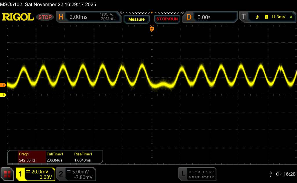 (+) | a csúcsok lineárisak (5.3% delta az előző frekvenciához képest)