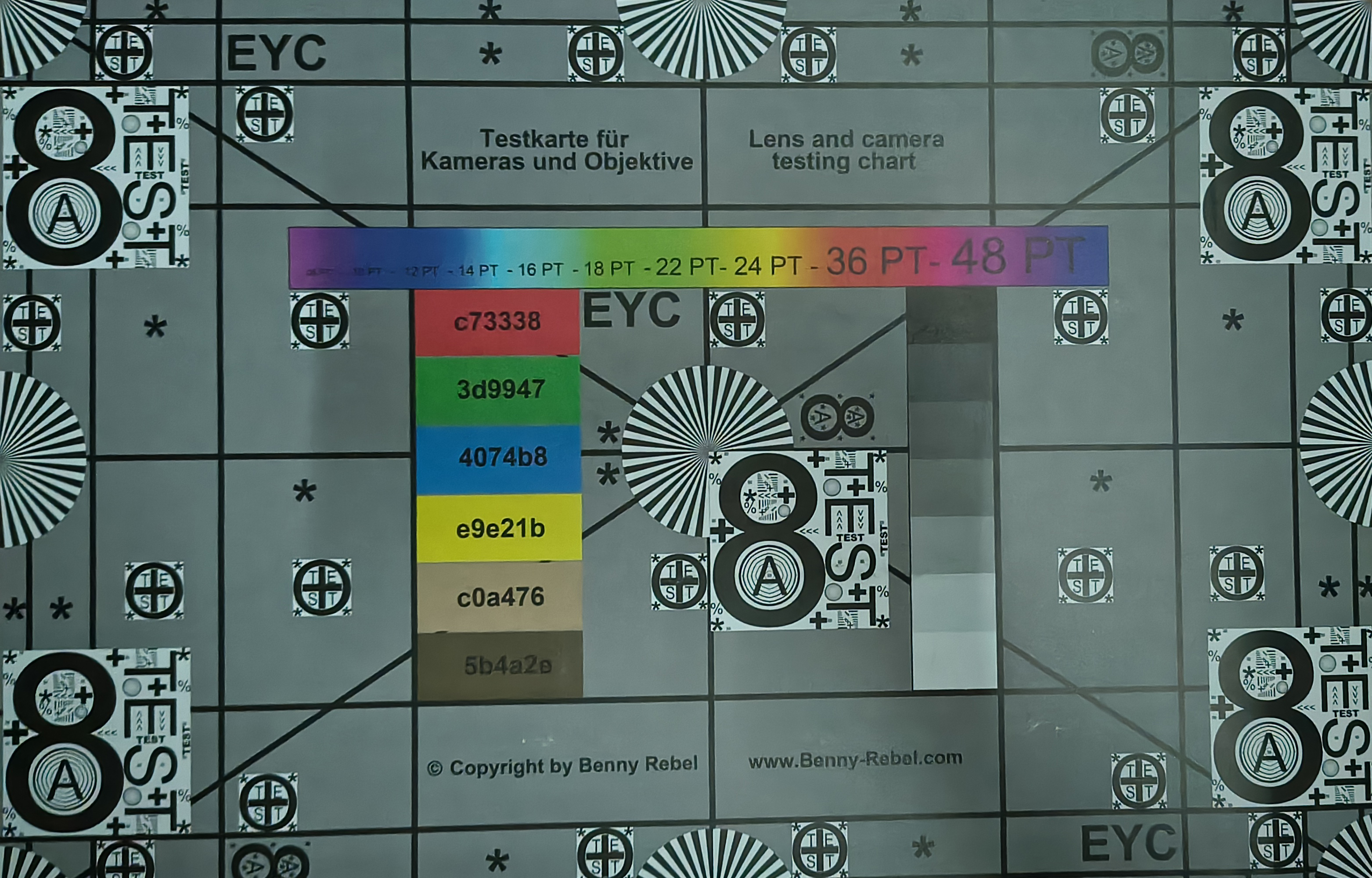 | Colorchecker dE 2000 max. * | 3.28 | 2.7 18% | 2.8 15% | 2.8 15% | 3.81 -16% |