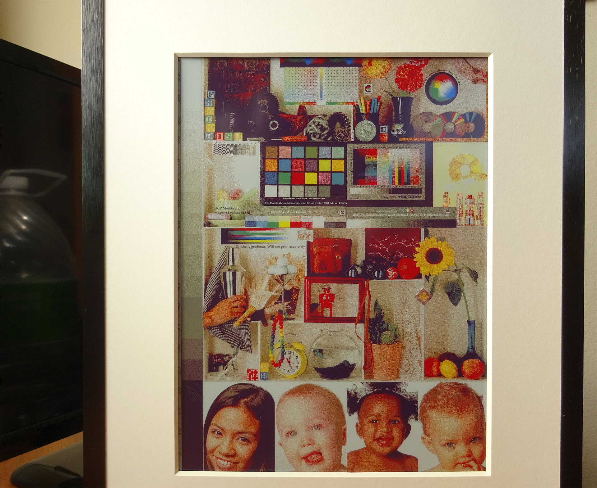 A Photodisc tesztcél fotónyomtatással való összehasonlítás rávilágít az E Ink Spectra 6 panel korlátaira. A háttér nem tiszta fehér, ami beszűkíti az árnyék részletességét és a maximális kontrasztot. A színskála is korlátozott, különösen a zöldek és a kékek esetében.