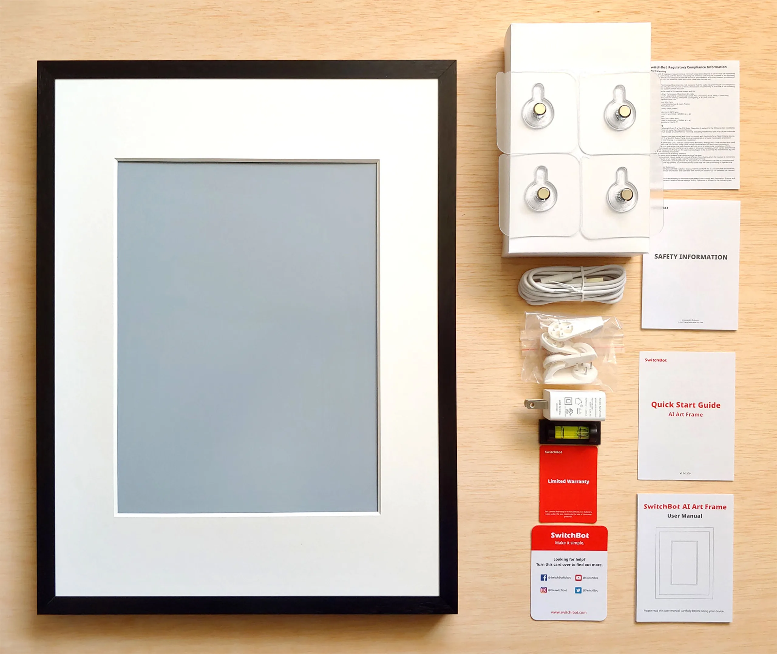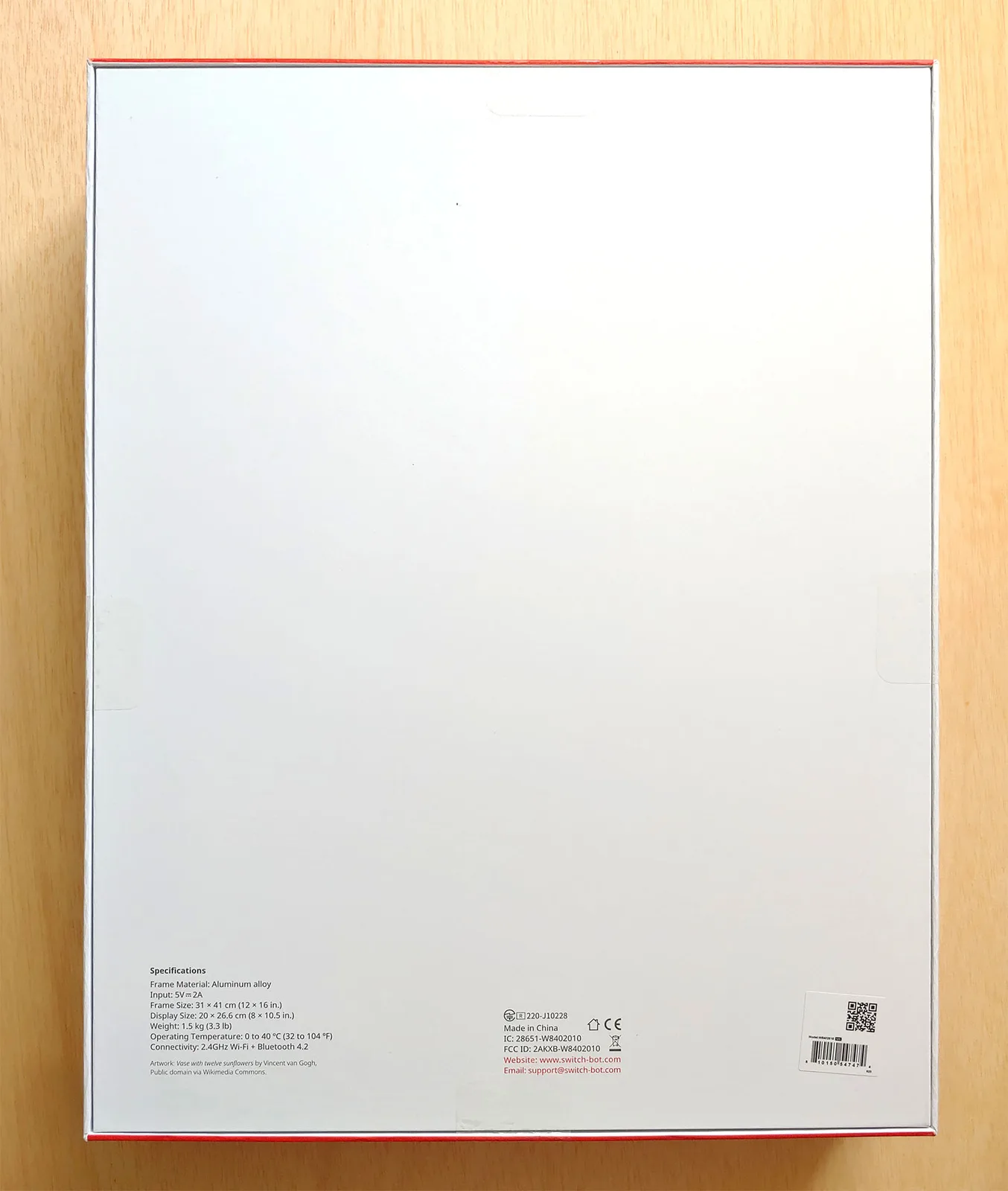 A 13,3 hüvelykes SwitchBot egyszerű kialakítású, messziről úgy néz ki, mint egy átlagos bekeretezett műalkotás, a E Ink Spectra 6 kijelző, amely a fényvisszaverődések csökkentése érdekében matt felülettel rendelkezik, és az alumíniumkeretbe van beépítve. A keret falra szerelhető, vagy a kihajtható állványnak köszönhetően asztalra is helyezhető. Az USB-C töltőport, a csatlakozógomb és a LED-es állapotjelző lámpa a hátoldalon található, ami azt jelenti, hogy a keretet le kell venni a falról a töltéshez vagy a beállításhoz.