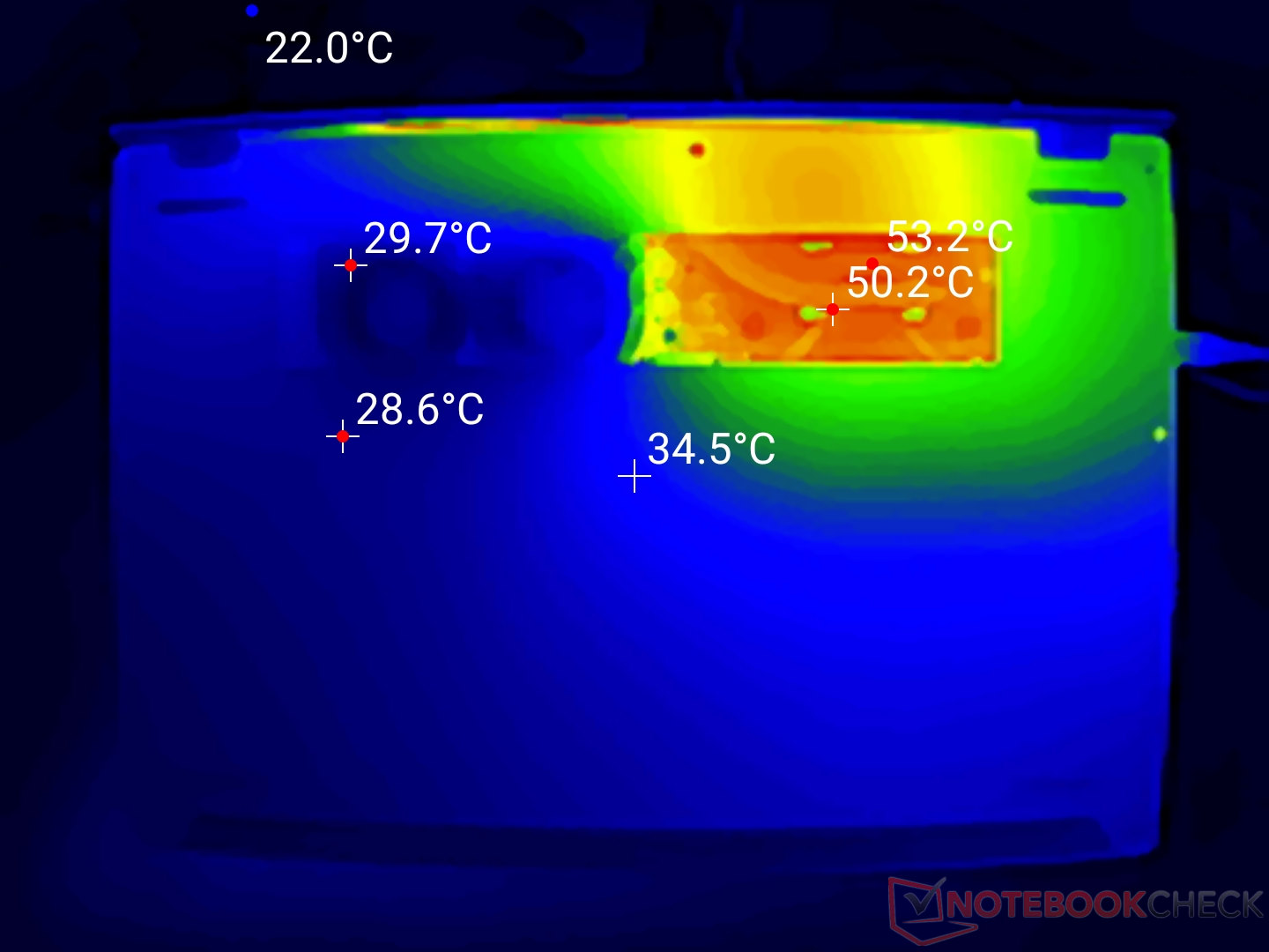 A Swift Go felületi hőmérséklete a felhasználók számára többnyire kezelhető. A billentyűk, a kéztámaszok és az érintőpad még a stressztesztek során is kellemes hőmérsékleten maradnak. Inkább az OLED-panelre fújó forró levegő miatt aggódunk, amely a kijelző alsó szélén 50 °C fölött mérhető. Ilyen magas hőmérsékleten az OLED-panelek elveszíthetik élettartamuk egy részét.