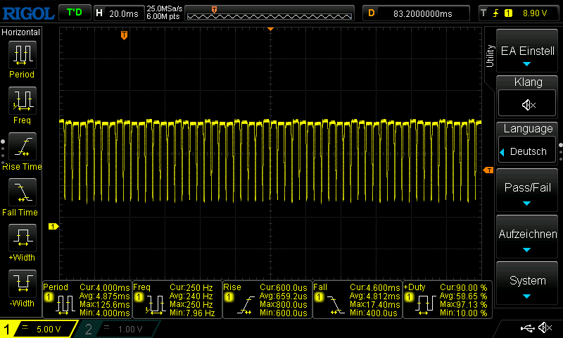 | 1.6 ms ... emelkedés és süllyedés ↘ kombinálva | ↗ 0.8 ms emelkedés | |