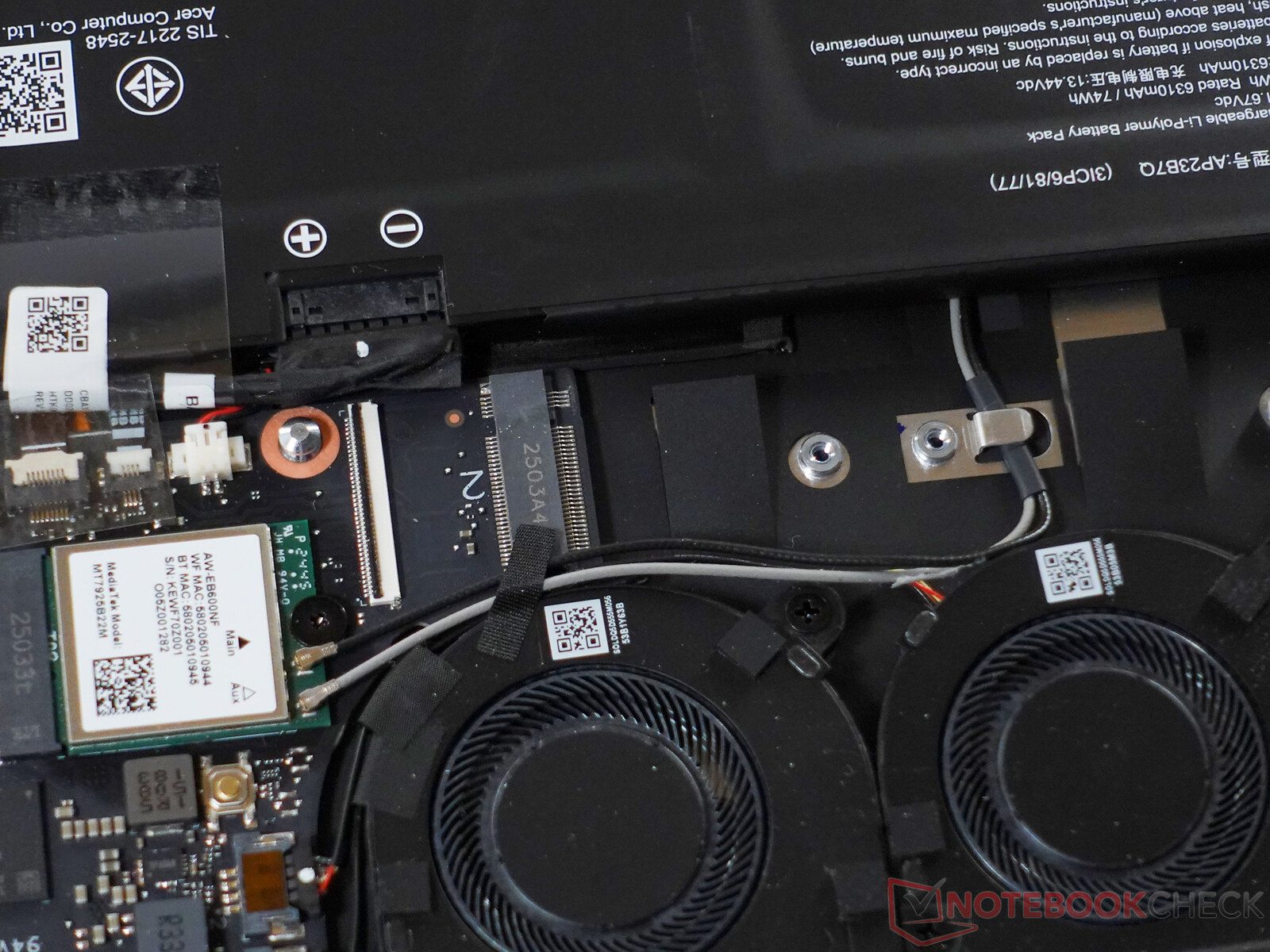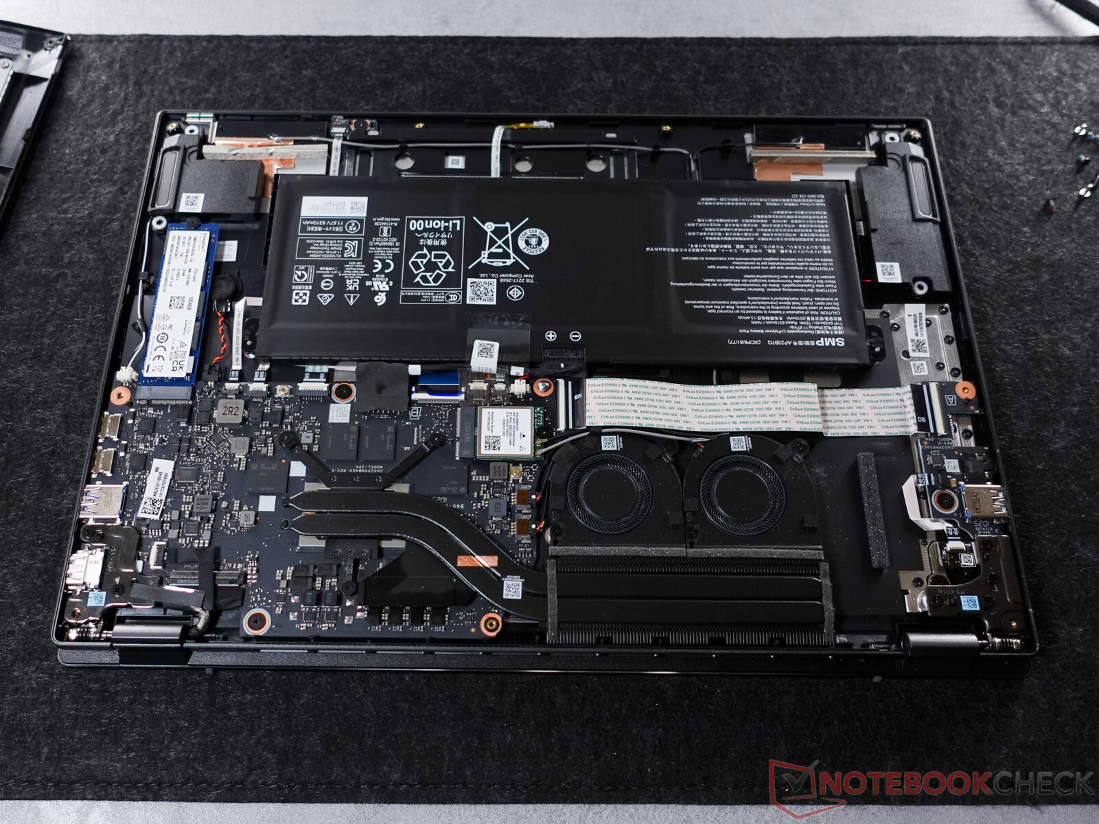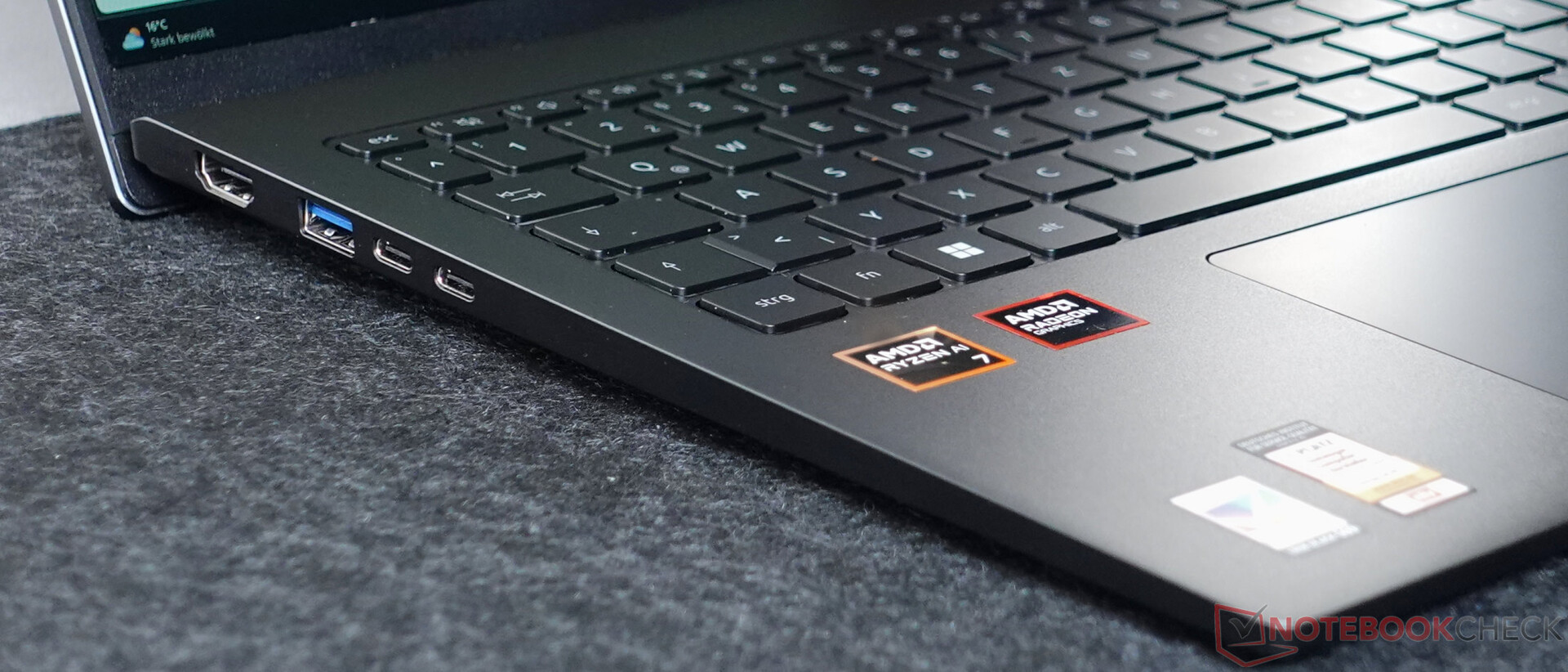 A 2,5K-s webkamera a kijelző kis kiemelkedésében jó képeket készít. A stabil Wi-Fi csatlakozást egy MediaTek modul biztosítja Wi-Fi 7-tel. A laptop bal oldalán összpontosul a legtöbb csatlakozó. Itt két USB-4 port is rendelkezésre áll.