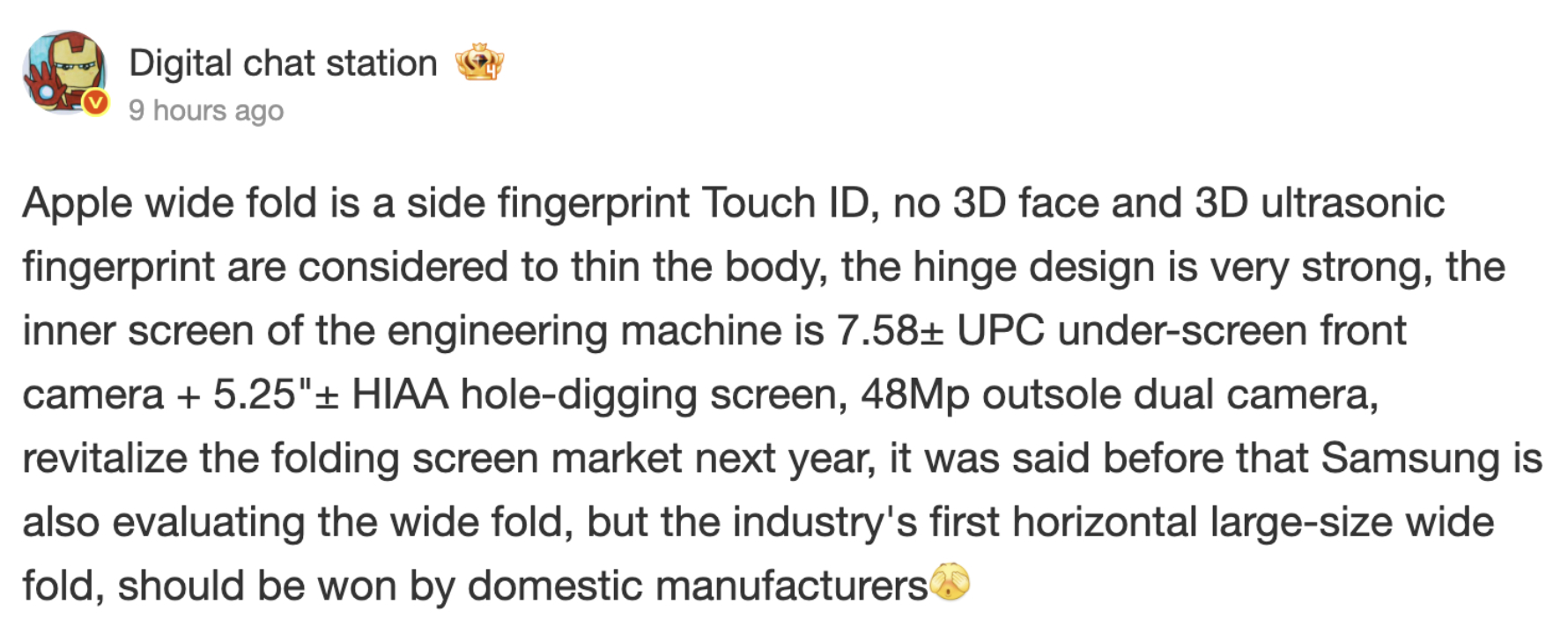 Az iPhone Fold valószínűleg majdnem egy év múlva kerül piacra. Ennek ellenére a Digital Chat Station azt állítja, hogy idő előtt új információkat kapott a készülékről.