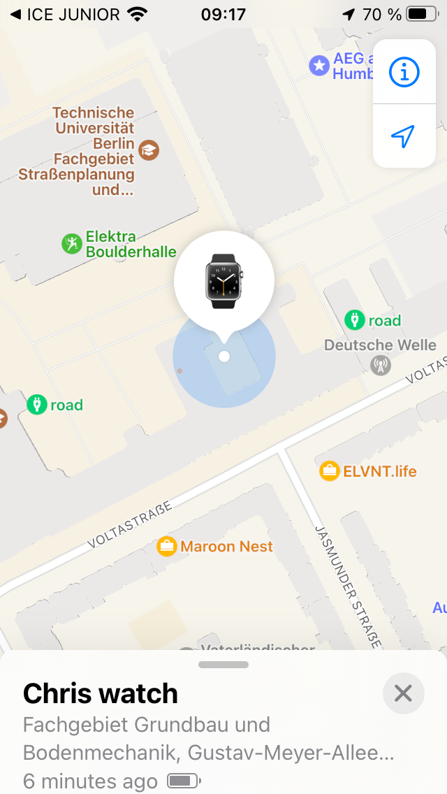 Hazaérve az iPhone helyesen frissítette a helyet - a házunkból a mászócsarnokba költözve. Ha azonban a gyermeke valahol olyan helyen van, ahol nincs a közelben Apple készülék, a nyomkövetés nem fog működni. Ez az a pont, ahol a GPS- vagy SIM-kompatibilis órák egyértelműen előnyben vannak.