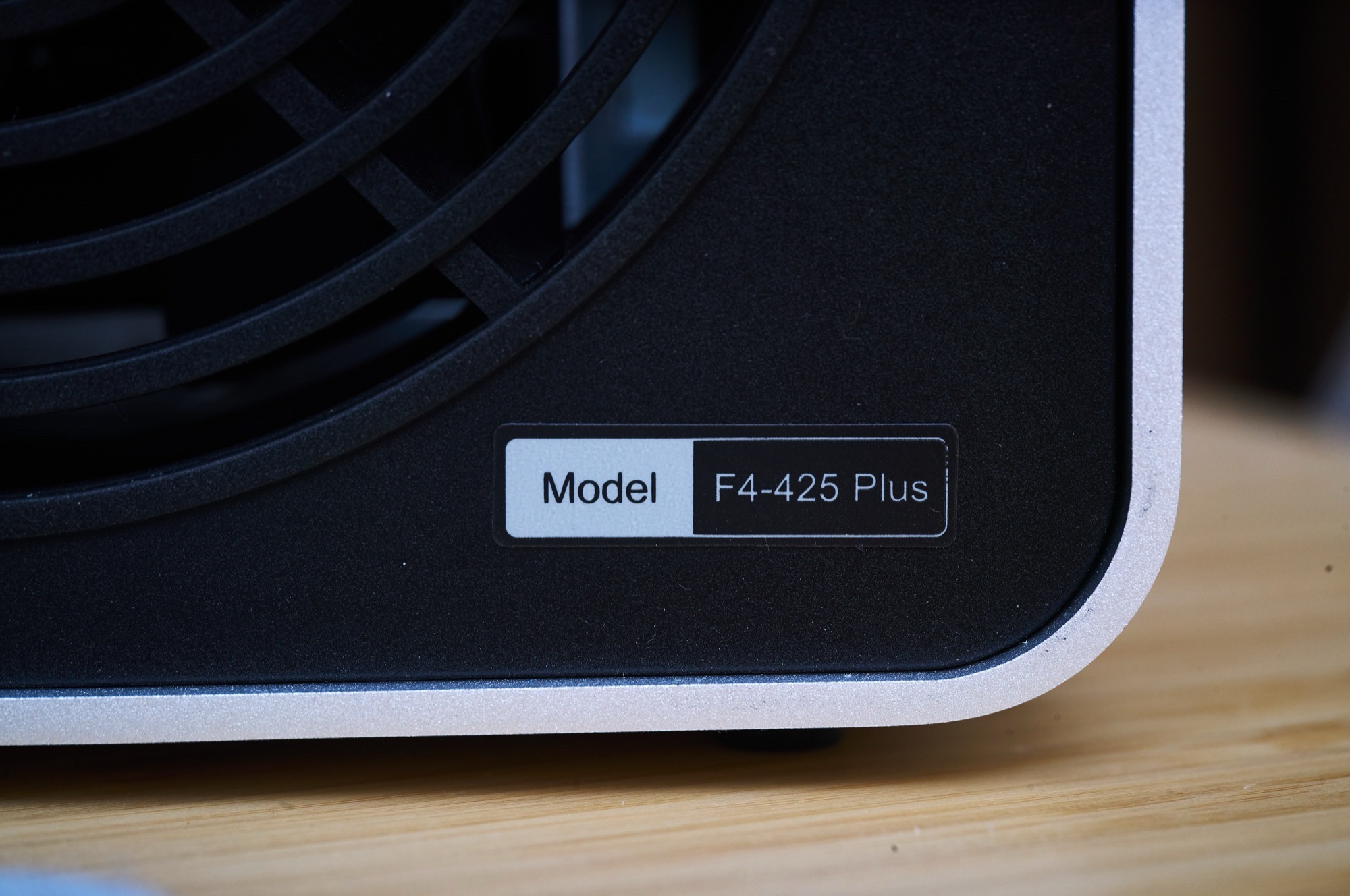 Az új TerraMaster F4-425 Plus hasonlít az F4-425-re, de fém vázzal és kisebb TerraMaster logóval rendelkezik. Az alumínium ház nemcsak prémiumabbnak tűnik, hanem a súlya is 2,1 kilogrammról 2,9 kilogrammra emelkedik. Az építési minőség kiváló, bár a meghajtótálcák továbbra is műanyagból készültek, és a hátlap is műanyag. Az M.2 SSD-k állapotjelző LED-jei feltűnően hiányoznak, így a meghibásodott SSD csak szoftveresen érzékelhető.