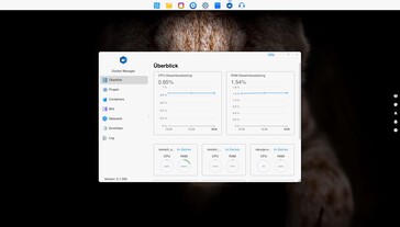 A TOS 6 egyértelműen nyomon követi a CPU- és RAM-használatot, és megmutatja a processzor és a meghajtók hőmérsékletét is. A TerraMaster saját alkalmazásboltot tartalmaz ingyenes alkalmazásokkal, amelyekkel az F4-425 Plus többek között fotó- vagy médiaszerverré alakítható. A Plex és a Jellyfin közvetlenül az áruházból is telepíthető. További harmadik féltől származó eszközök telepíthetők Docker segítségével; a tesztelés során a Immich gond nélkül települt és futott.