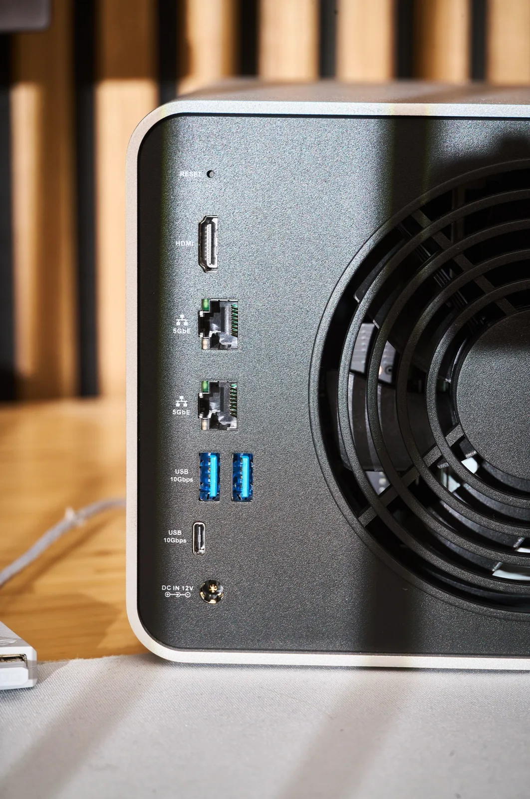 A továbbfejlesztett felépítésen túl a Plus modell több jelentős fejlesztést is bevezet. A legfontosabb, hogy mostantól két 5 Gbps-os Ethernet porton keresztül csatlakozik az otthoni hálózathoz, amelyek egyidejűleg 10 Gbps-os együttes sávszélességet biztosítanak. A gyakorlatban a NAS akár négyszer gyorsabb lehet elődjénél.