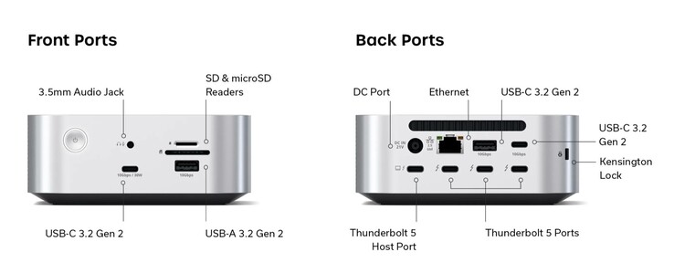 A dokkolóállomás a Thunderbolt 5 segítségével csatlakozik 120 Gbps sávszélességgel, és ugyanezen a kábelen keresztül akár 140 wattos teljesítményű laptopokat is tölthet. A dokkoló a csak Thunderbolt 4-et támogató Mac-ekkel is kompatibilis, bár csökkentett teljesítménnyel. A dokkoló elején található egy USB-C port, amely akár 30 wattal is képes tölteni az eszközöket, és 10 Gbps sebességgel képes adatokat továbbítani. Ezen kívül az előlapon található egy 3,5 mm-es fejhallgató-csatlakozó, egy USB-A port, valamint egy SD- és microSD-kártyaolvasó.