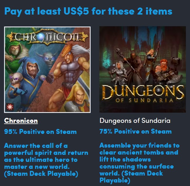 - Chronicon: Ez az ARPG lehetővé teszi, hogy egy mágikus eszköz, a Chronicon segítségével elesett hősök lelkébe és emlékeibe utazhass, így újra átélheted az életüket. Dungeon harcokat, zsákmányszerzést és karakterfejlődést kínál. A Chronicon 13,99 dollárba kerül a Steamen. Jelenleg több mint 9400 értékeléssel rendelkezik, amelyek 94%-a pozitív.