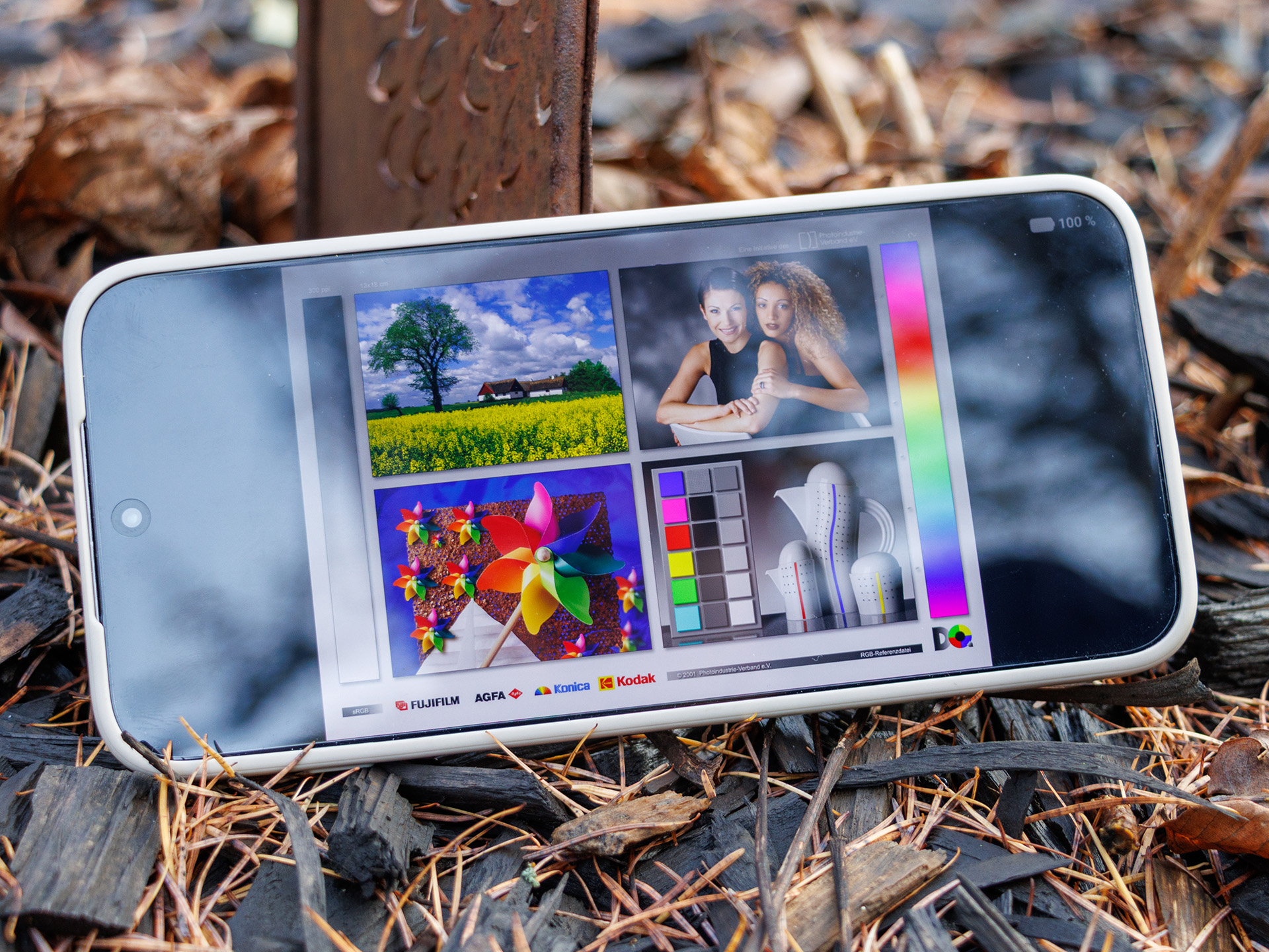 Main cameraMain cameraUltra-wide angle5x zoomLow-lightEllenőrzött fényviszonyok mellett a Vivo X300 Pro szuper természetesen adja vissza a színeket. A legnagyobb eltérést (dE 7,05) a sötétzöld színben észleltük, amelyet a telefon kamerája kissé felvilágosított.