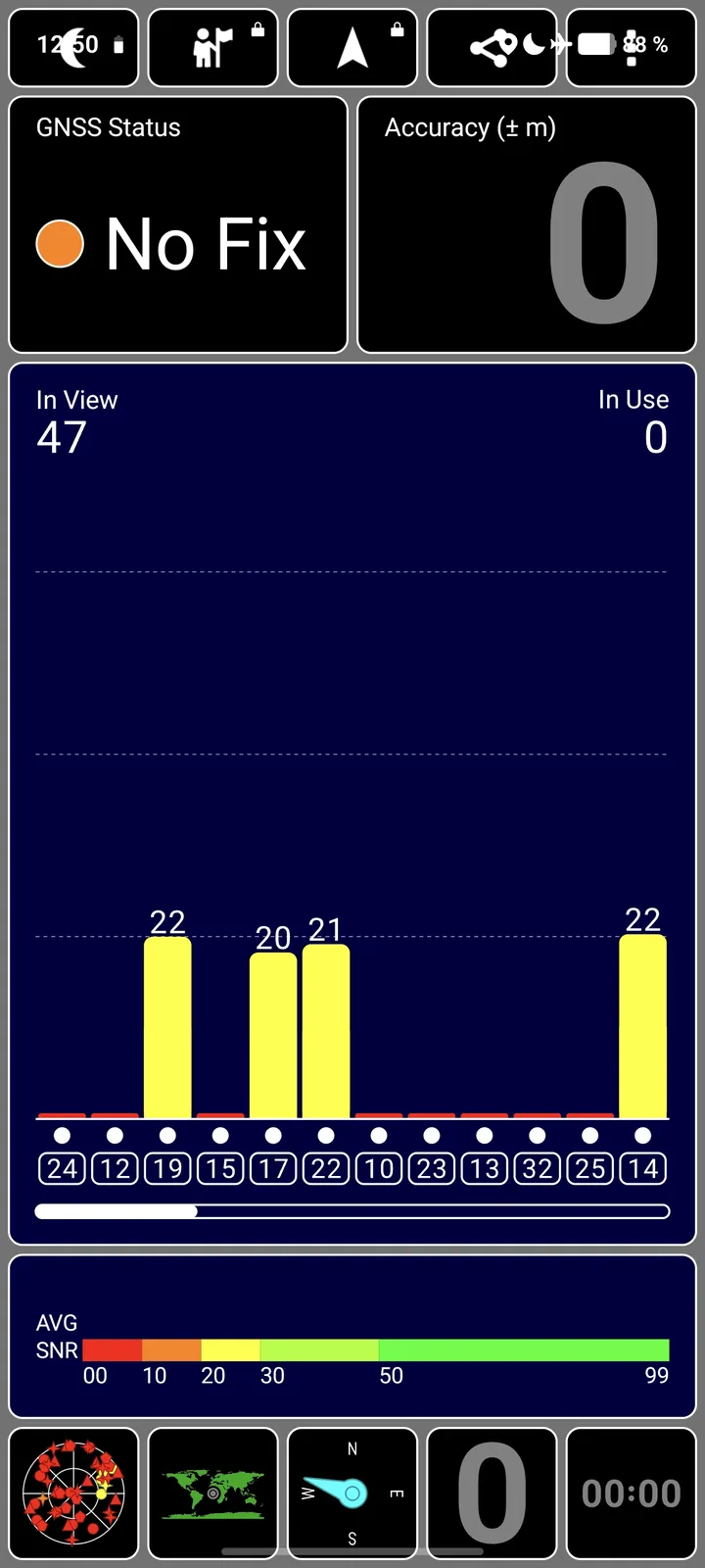 A műholdas navigációhoz a telefon háromsávos kapcsolattal rendelkezik az összes globális hálózaton. Úgy tűnik, hogy a műholdas helymeghatározás nem működik beltérben mobilkapcsolat nélkül, kültéren pedig még mindig egy kicsit tovább tart, és a pontossága még javításra szorul.