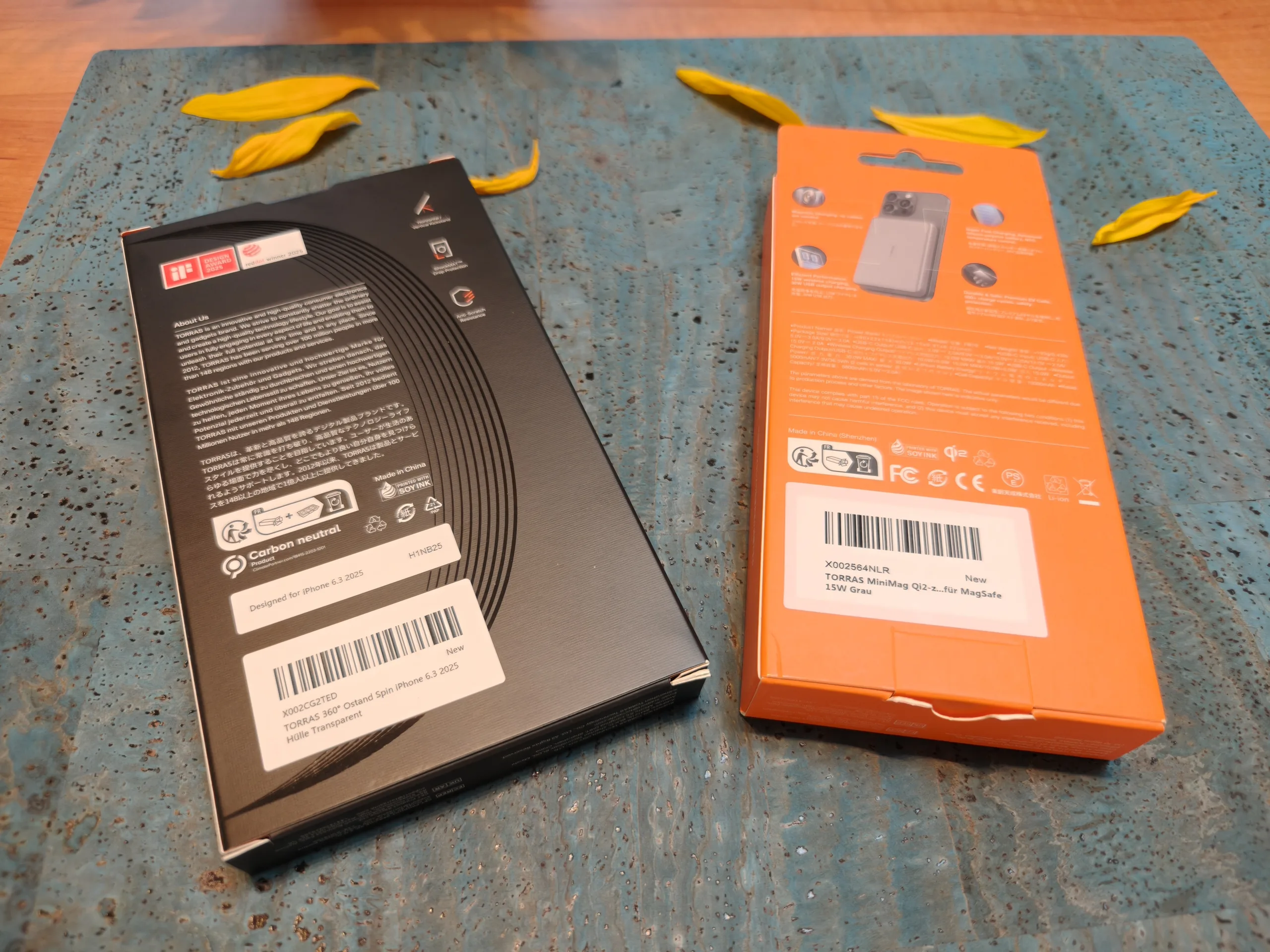A Torras telefontokjai és power bankjai nagyon vékony csomagolásban, környezetbarát szója tintával nyomtatva kerülnek forgalomba. Sajnos a belsejében még mindig műanyag tálcákat és fóliákat használnak.