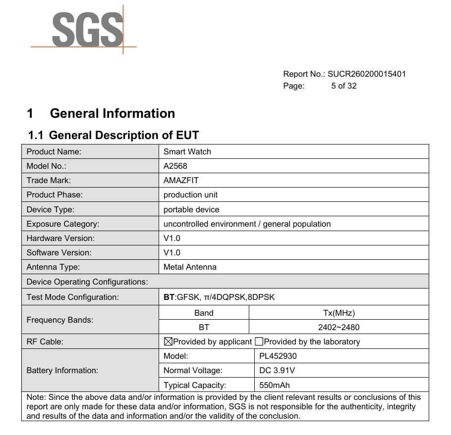 Az Amazfit A2568 például 550 mAh-s akkumulátort tartalmaz. Több mint 60%-kal nagyobb, mint a Bip 6-ban található 340 mAh-s akkumulátor, ez a kapacitás valószínűleg kizárja, hogy az A2568 a Bip 7 legyen. Ugyanez igaz az Active 2 Square-re is, amelynek akkumulátora több mint 50%-kal kisebb, mint az A2568-é.
