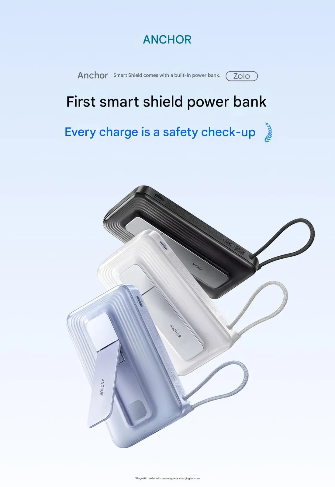 Az Anker Zolo Smart Shield Built-in Cable Power Bank állítólag a márka régebbi modelljeihez képest továbbfejlesztett akkumulátorcellákkal rendelkezik; ezeket a Apple beszállító ATL gyártja. Kettős biztonsági védőeszközökkel rendelkezik, és lángálló anyagokkal készült. Lehet, hogy az Anker ezeket a funkciókat a következők miatt népszerűsíti több power bank visszahívása miatt a túlmelegedéssel kapcsolatos aggodalmak miatt, amelyeket 2025-ben jelentett be.