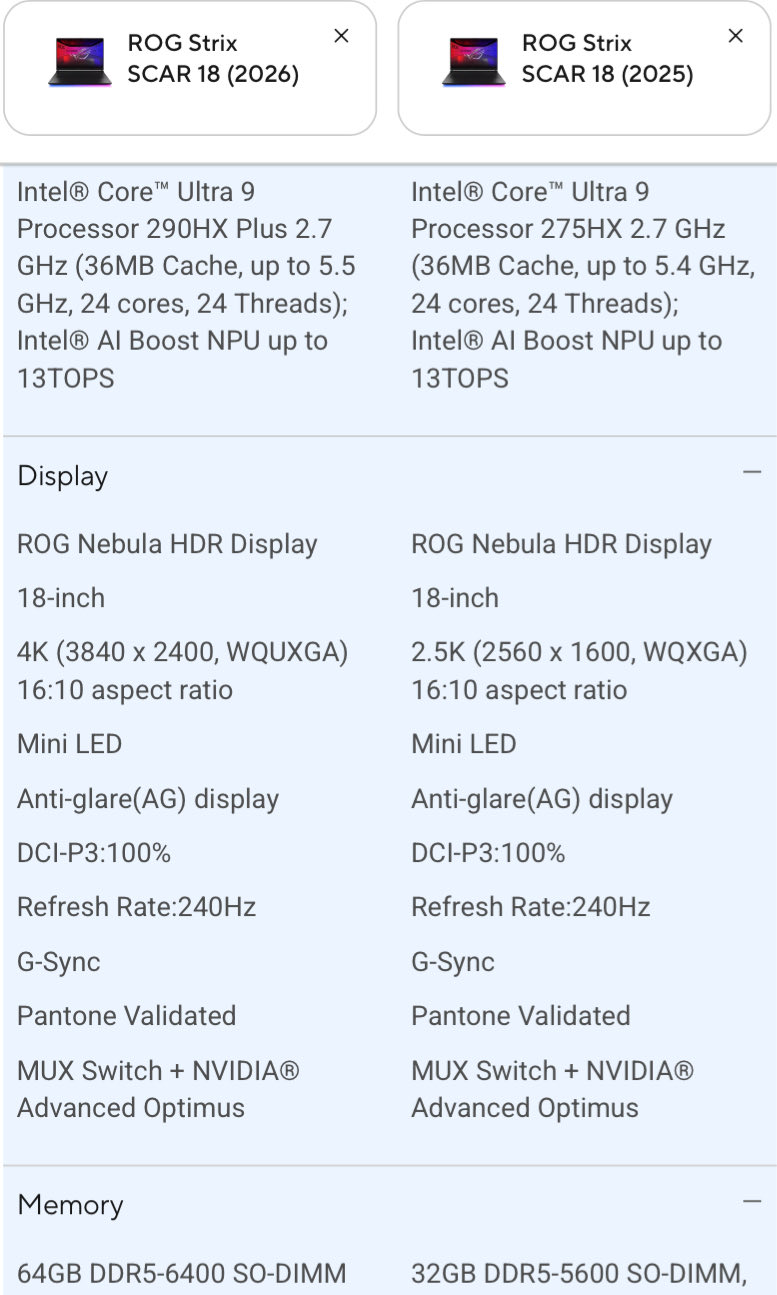 A hét elején az Asus bejelentette az új ROG Strix gamer laptopok trióját 2026-ra. A vállalat például számos részletet osztott meg mind a ROG Strix G16 2026 és a ROG Strix G18 2026. Emellett azt is megcikizte, hogy a ROG Strix Scar 18 frissített változata is úton van (jelenleg 3599 dollár az Amazonon).