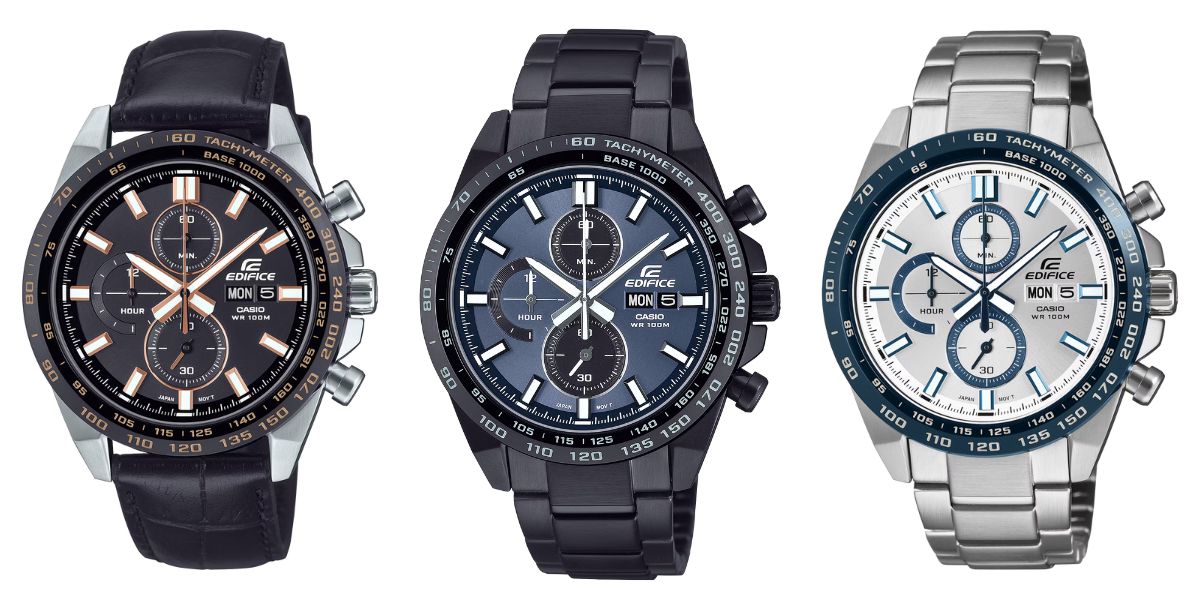 Az új Casio Edifice EFR-574 kronográfok a EFR-574BL-1AV, a EFR-574DC-2AV és a EFR-574DE-7AV. Ezek az órák ionizált tachymeter lünettával, rozsdamentes acél házzal és szíjjal rendelkeznek. Az analóg modell három mutatóval rendelkezik az óra, a perc és a stopper másodpercek számára, valamint a stopperóra funkcióhoz kapcsolódó beillesztett számlapok hármasával. Emellett az óralapon nap- és dátumkijelzés is található, és ezek az órák 100 m-ig vízállóak.