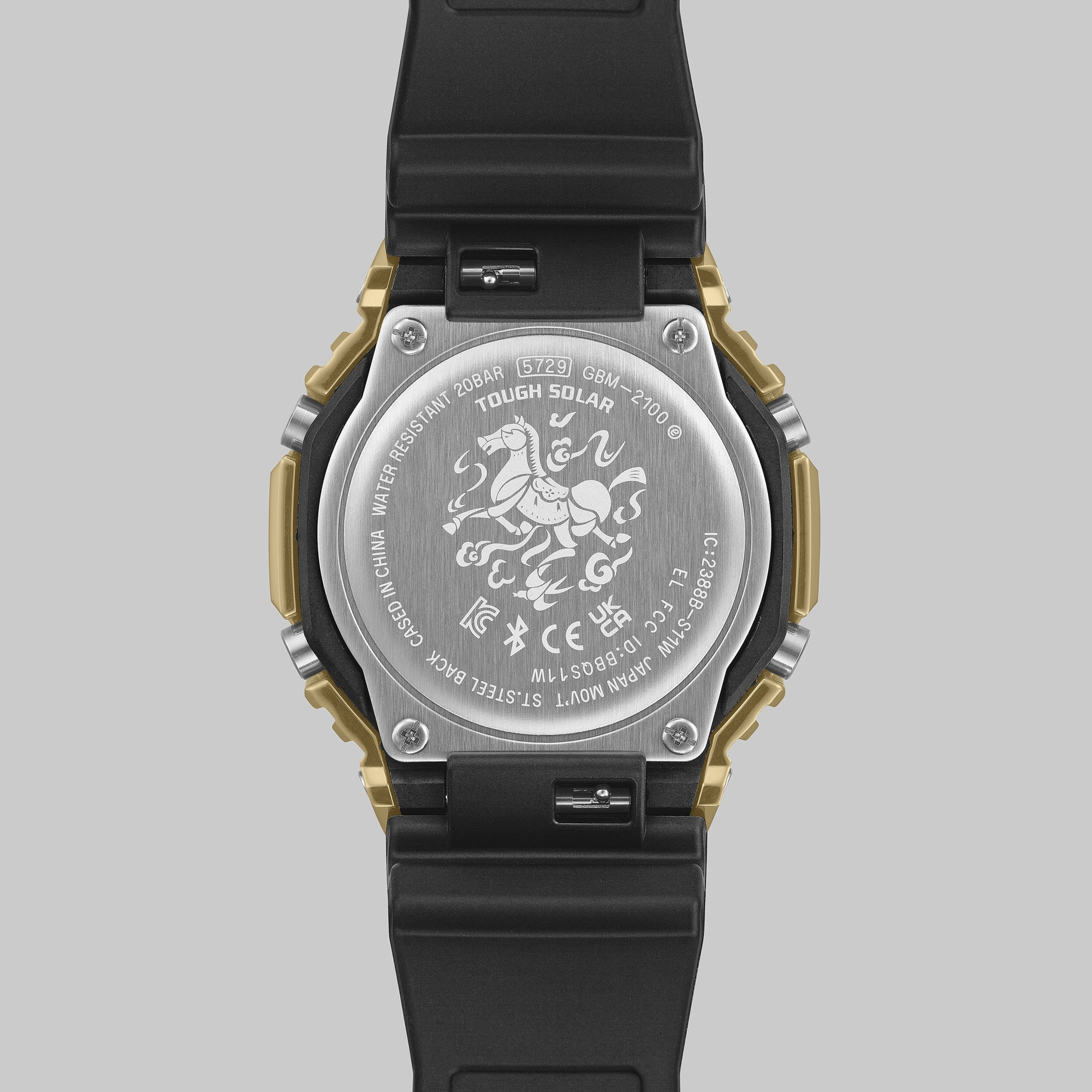 A Casio GBM-2100CX-9A a mitikus mille-li lovat ábrázolja, amely a fekete számlapon domborodik. A ló sörénye az aranyszínű rozsdamentes acél lünettára van gravírozva, az állat pedig a fém tok hátlapján is megtalálható. Ez az óra fekete műgyanta burkolattal és szíjjal rendelkezik, a számlapon vörös ékezetekkel.