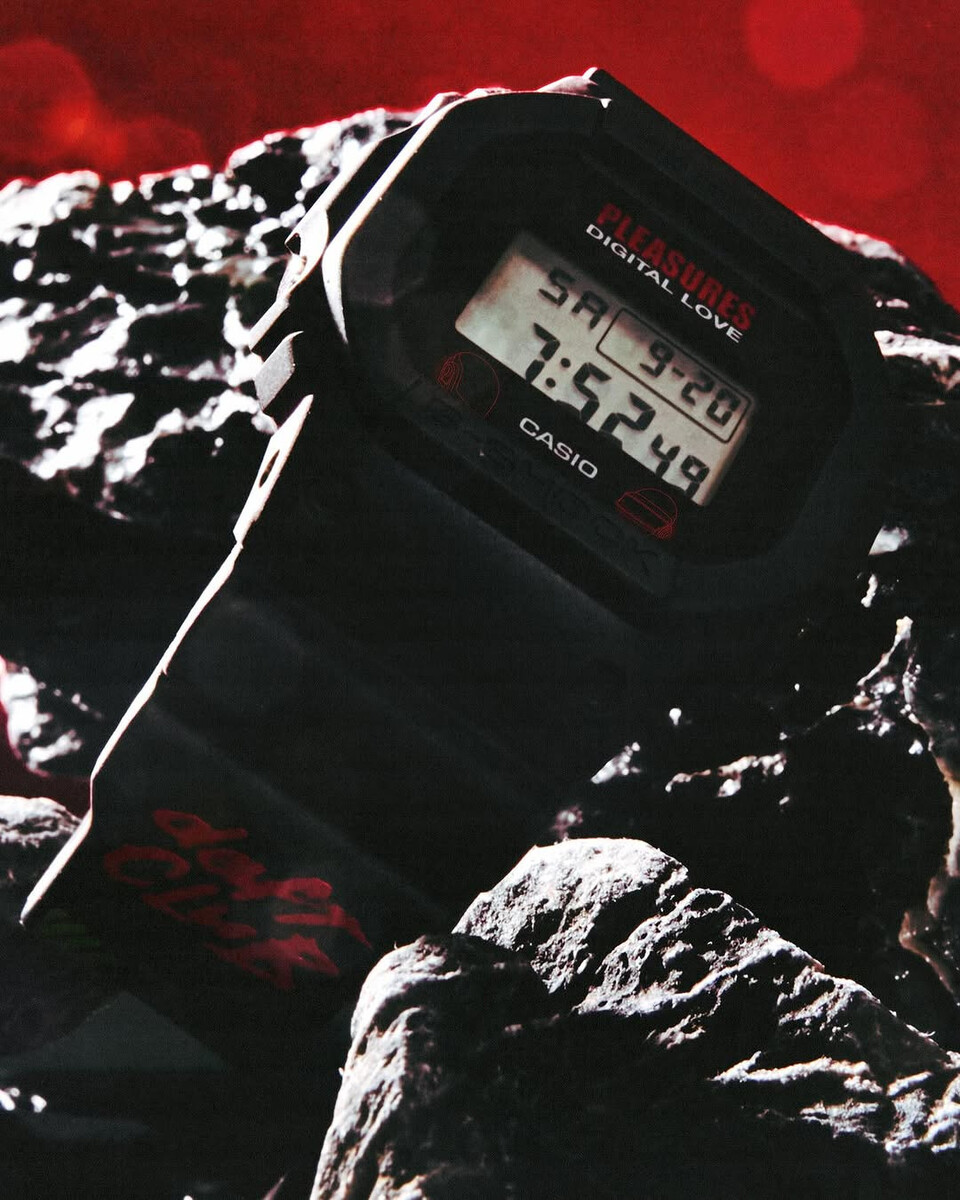 Pleasures felfedte a közelgő limitált kiadású óráját a Daft Punkkal és a Casio G-Shock-kal, és a tervek szerint október 9-én 10AM PST-kor jelenik meg, kizárólag a pleasuresnow.com oldalon keresztül. Ez az együttműködés közvetlen inspirációt merít a Daft Punk ikonikus, korszakalkotó vizuális stílusából és zenei örökségéből - és mindez eléggé nyilvánvaló az órán látható designjegyekben. Az óra kijelzőjén piros színű "Digital Love" márkajelzés látható (utalás Punk népszerű számára, a Digital Love-raa Discovery című albumról), míg a duó sisakjainak mintái az alsó lünettán vannak jelen.