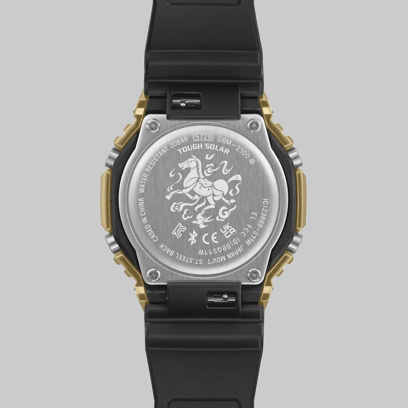 Az óra a 2100-as sorozat karcsú profiljával rendelkezik, mérete 49,3 × 44,4 × 11,9 mm, súlya pedig 72 g. Sokkal díszesebb részletekkel rendelkezik, mint a standard modellek. A lünetta arany IP kivitelezést használ, a számlap indexei és mutatói pedig arany-piros színben pompáznak. A hátsó tokba egy stilizált lóábrázolás van gravírozva, amely illeszkedik a zodiákus témához - utalva a mitikus "Senri-uma", egy legendás lóra, amely állítólag ezer mérföldet futott egyetlen nap alatt. A Casio szerint a dizájn az erő és a szerencse szimbóluma az új évre.