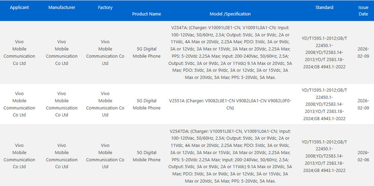 A Vivo a közelmúltban kapott 3C minősítés alapján az X300 Ultra két változatát készítette elő a hazai piacon történő értékesítésre. Egyrészt a vállalat a 3C-nél a V2547A modellszámmal a normál X300 Ultra-t hitelesítette. Korábban úgy gondolták, hogy az X300 Ultra a v2536A modellszámmal, amit az újabb bizonyítékok cáfolnak.