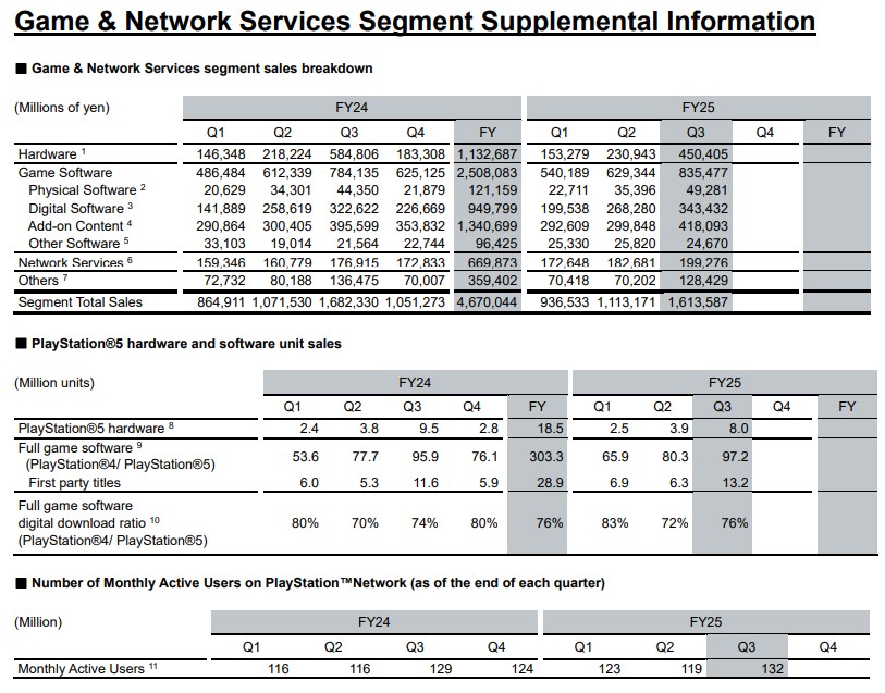 A vállalat arról is beszámolt, hogy 2025. december 31-én 132 millió havi aktív felhasználója volt a PlayStation Networknek. Ez a szám hárommillióval nőtt az előző pénzügyi év azonos időszakához képest.