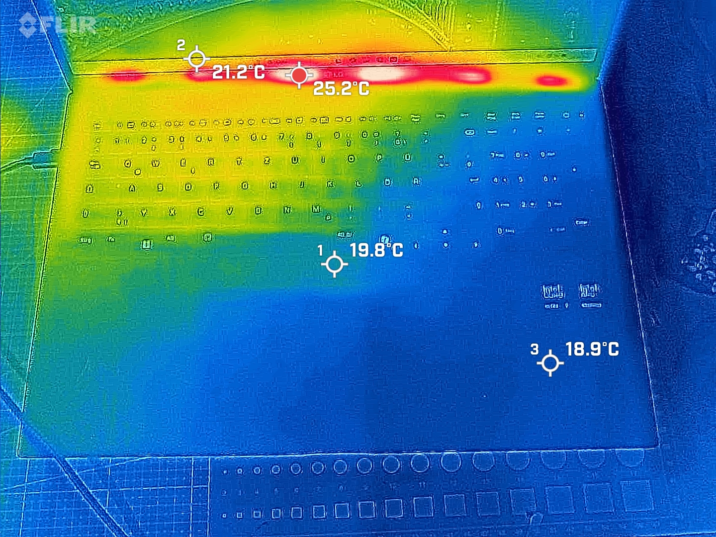 A billentyűzet felülete bizonyára eléggé felmelegszik, bár soha nem válik olyan kellemetlenül forróvá, hogy a gépelés fárasztóvá váljon.