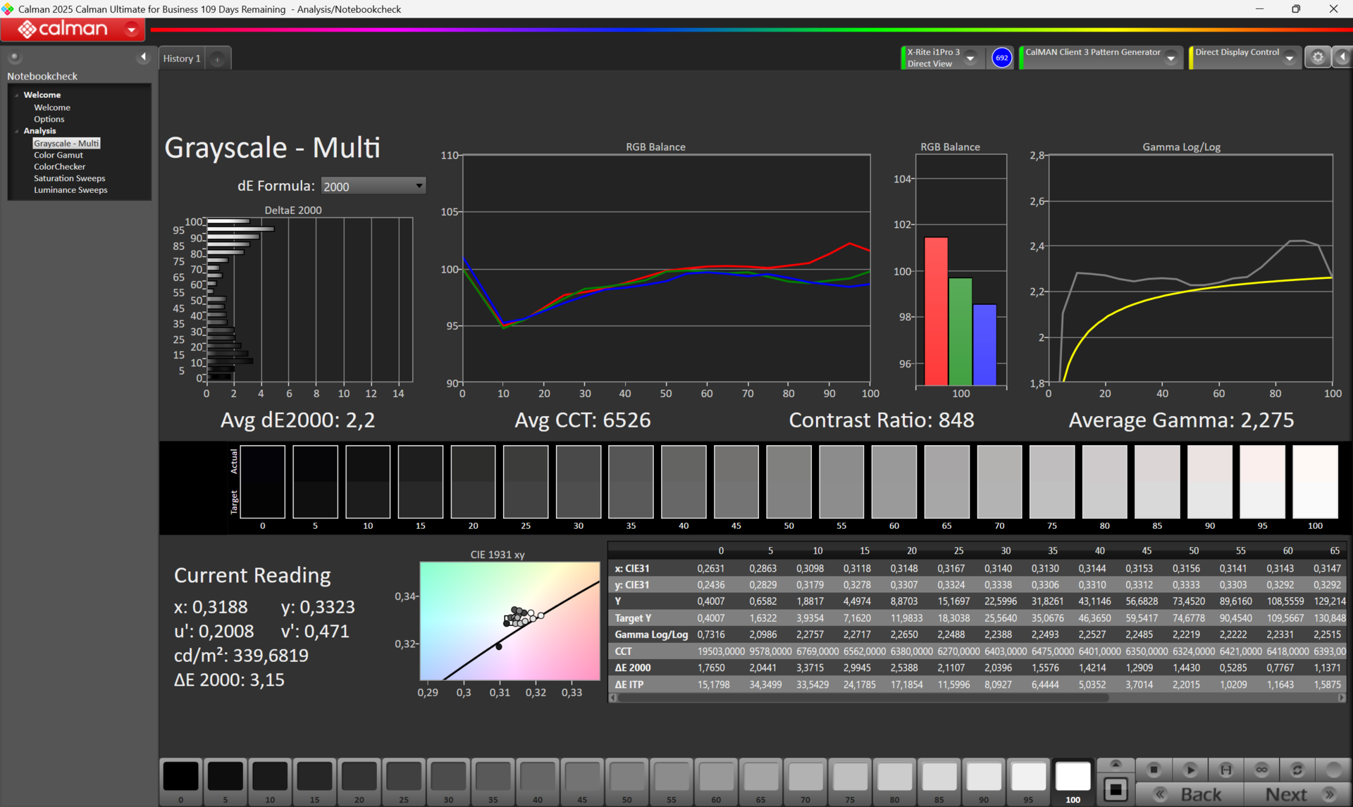 ΔE Greyscale Calman: 2.2 | ∀{0.09-98 Ø5}